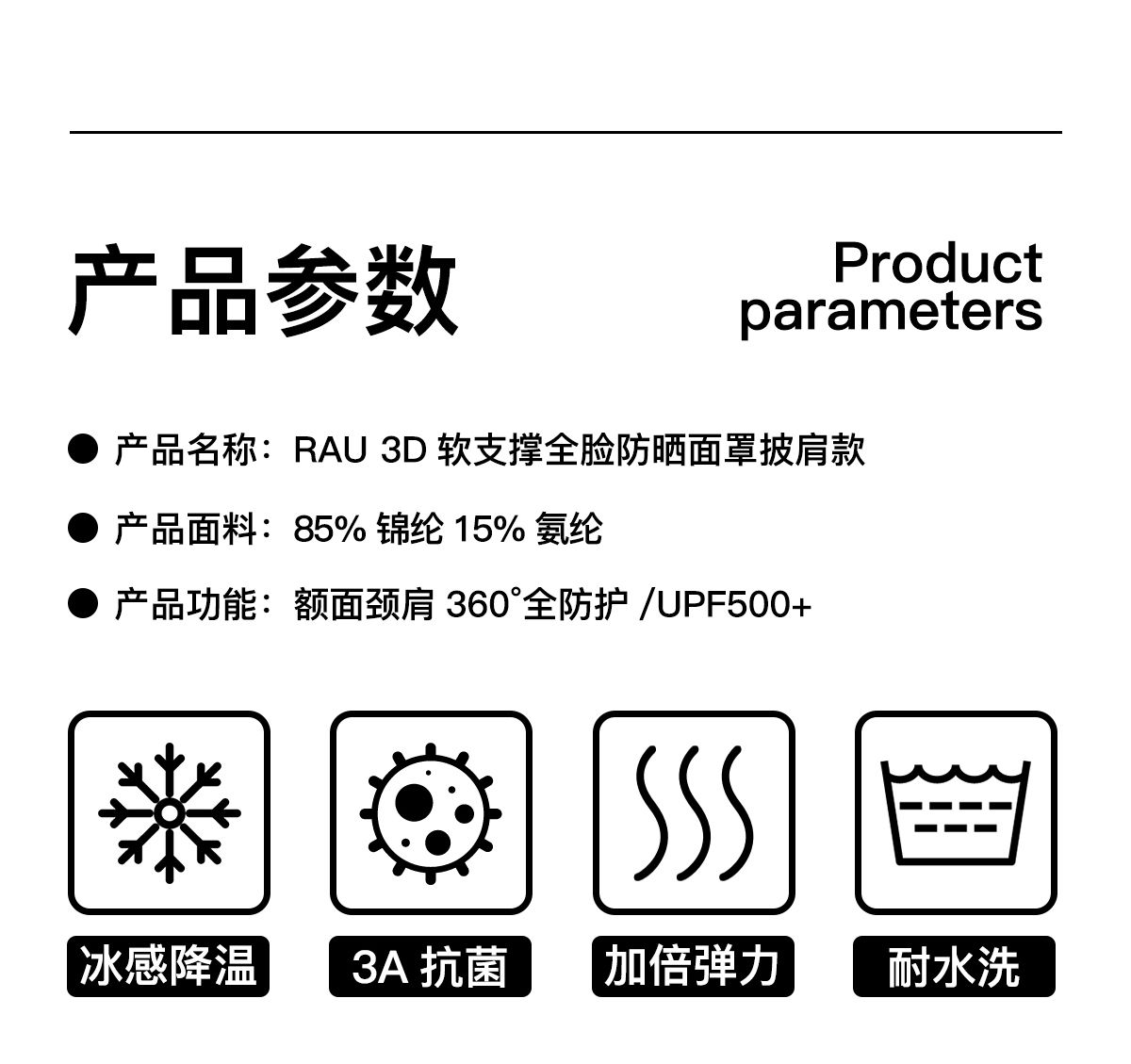 商品名称:RAU 3D软支撑全脸防晒面罩披肩款
