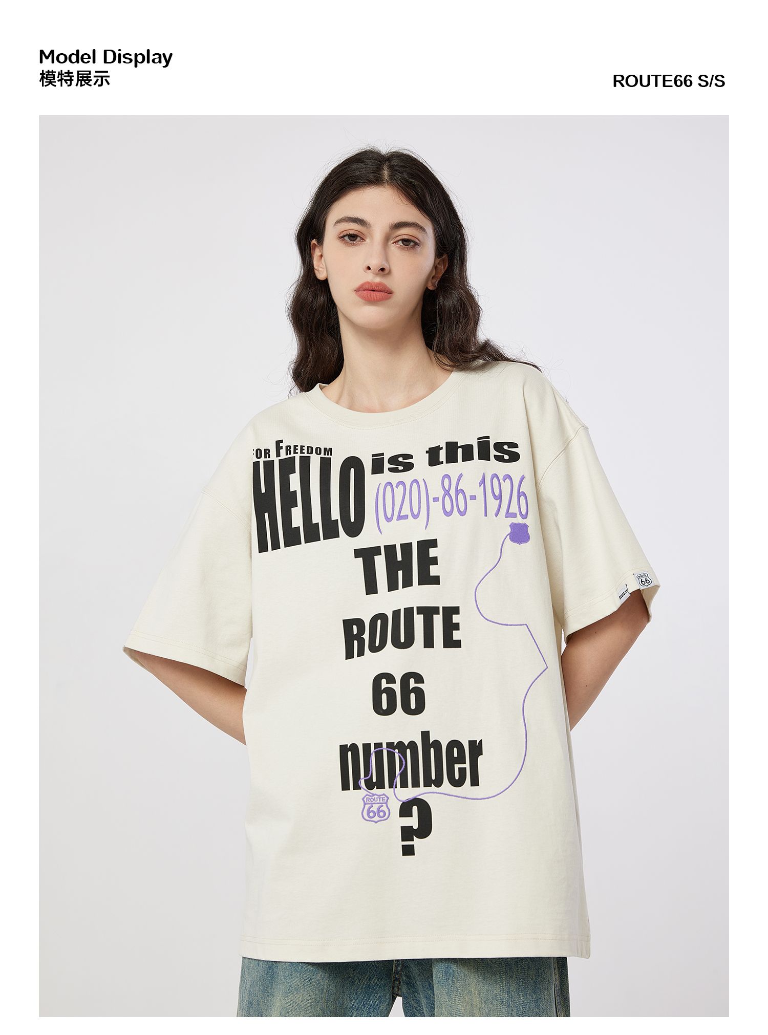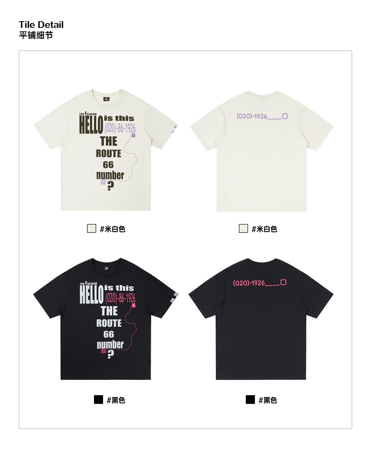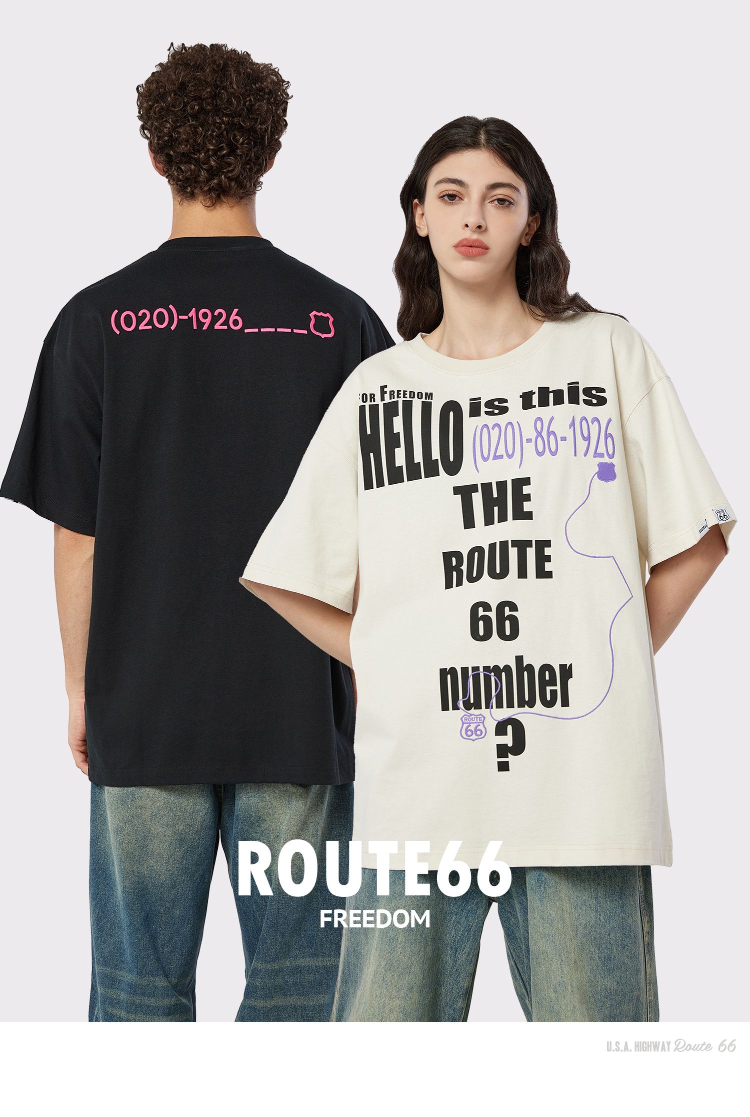 ROUTE66春季新款撞色拼接半袖T恤情况款美式复古高街潮流短袖上衣