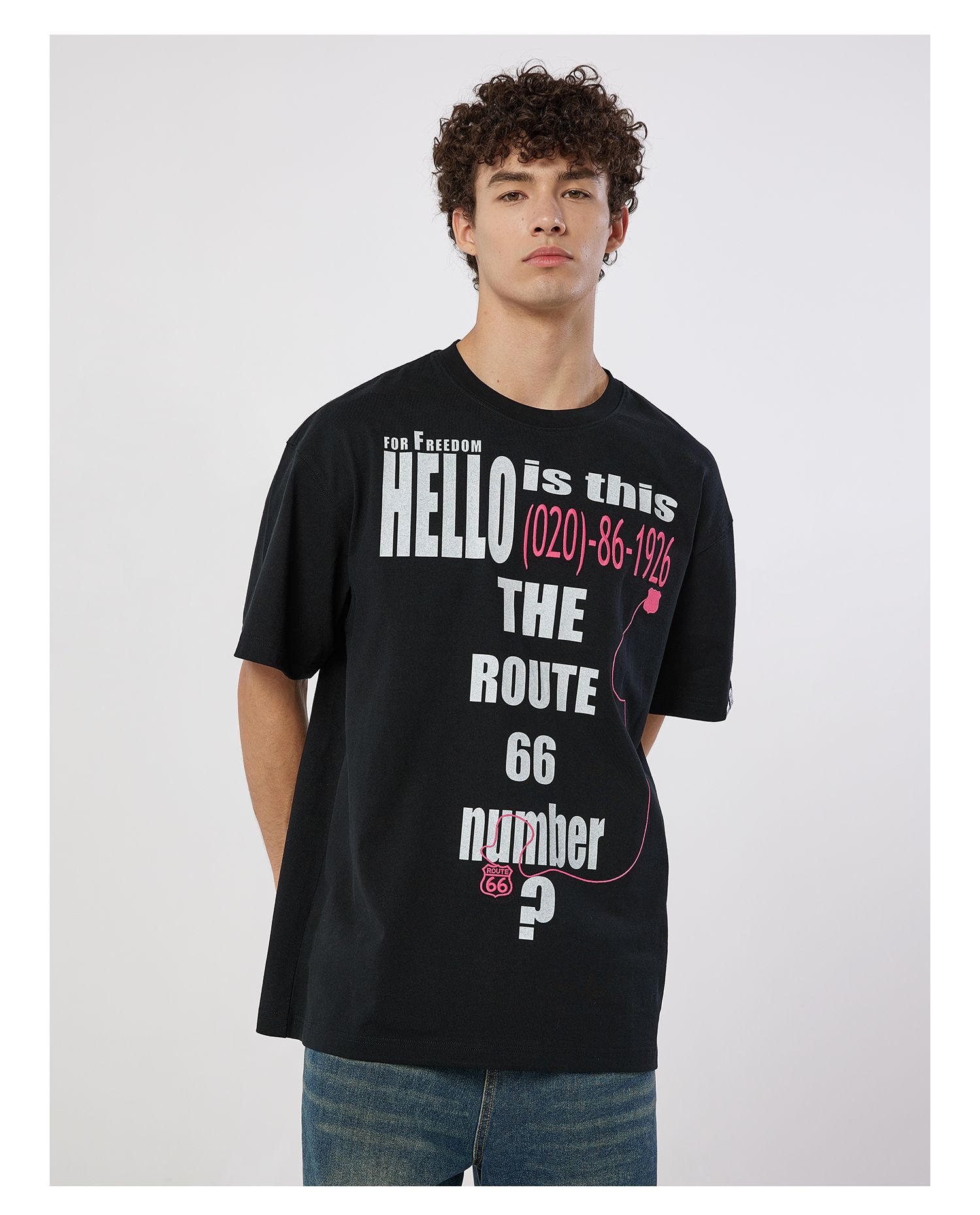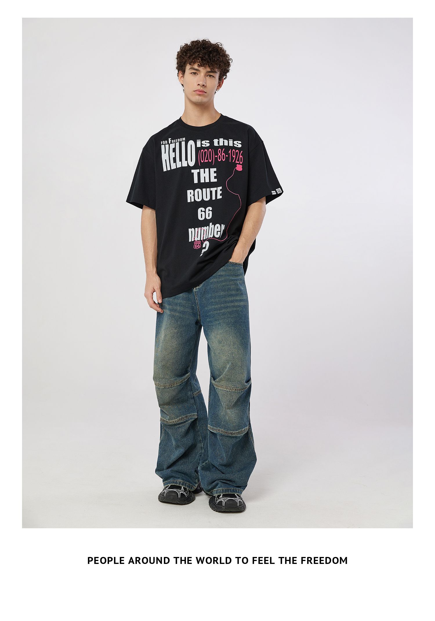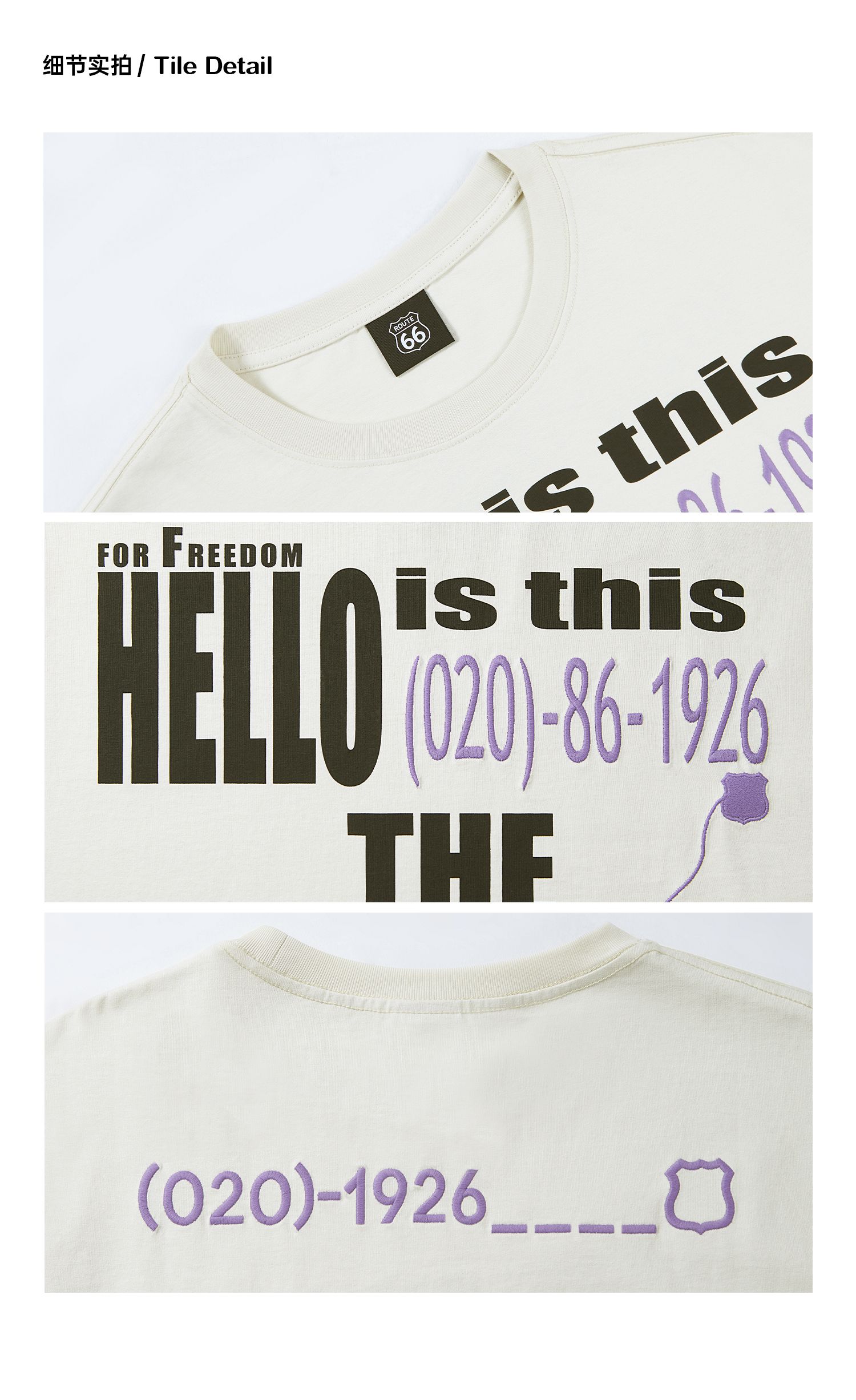 ROUTE66春季新款撞色拼接半袖T恤情况款美式复古高街潮流短袖上衣