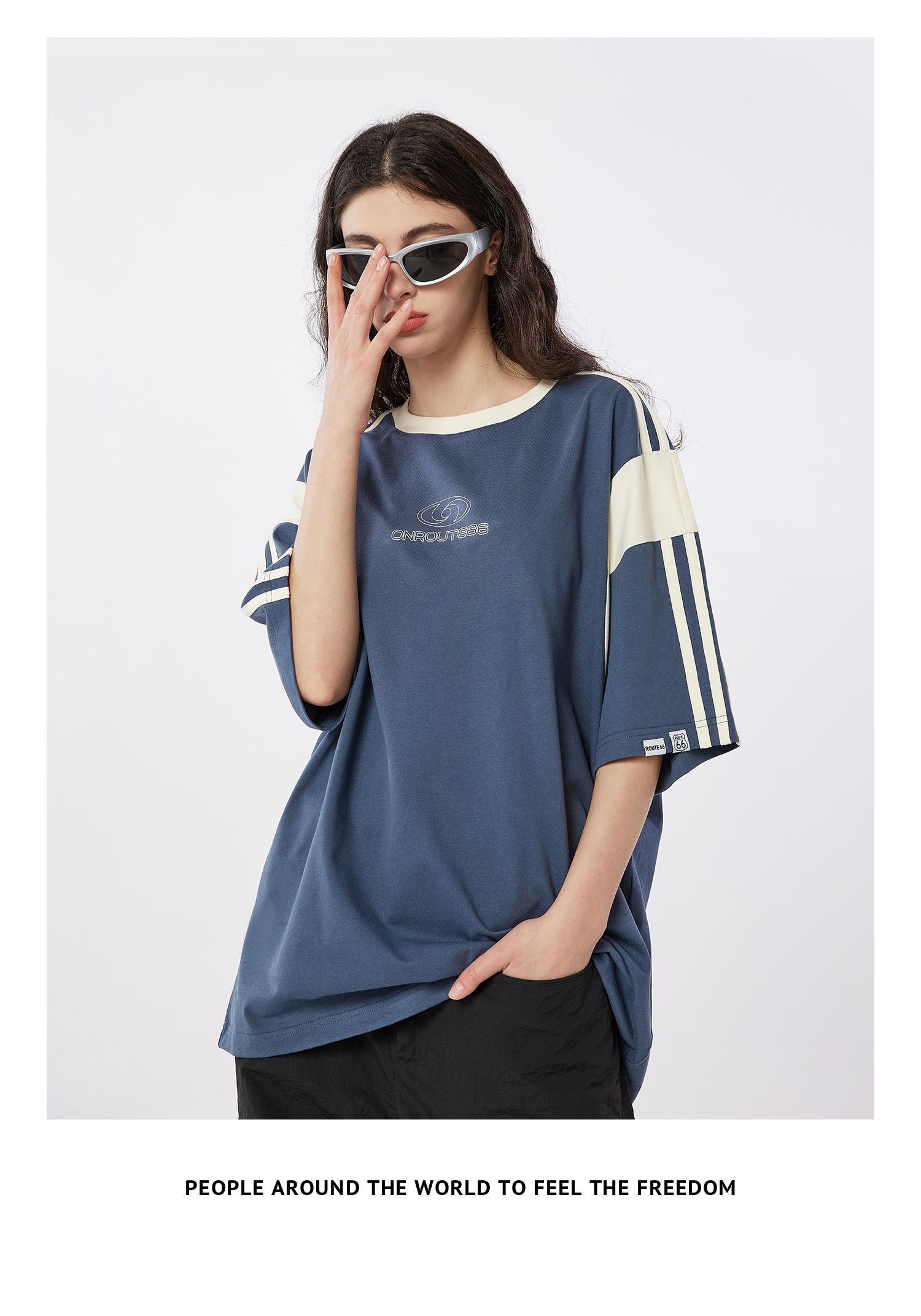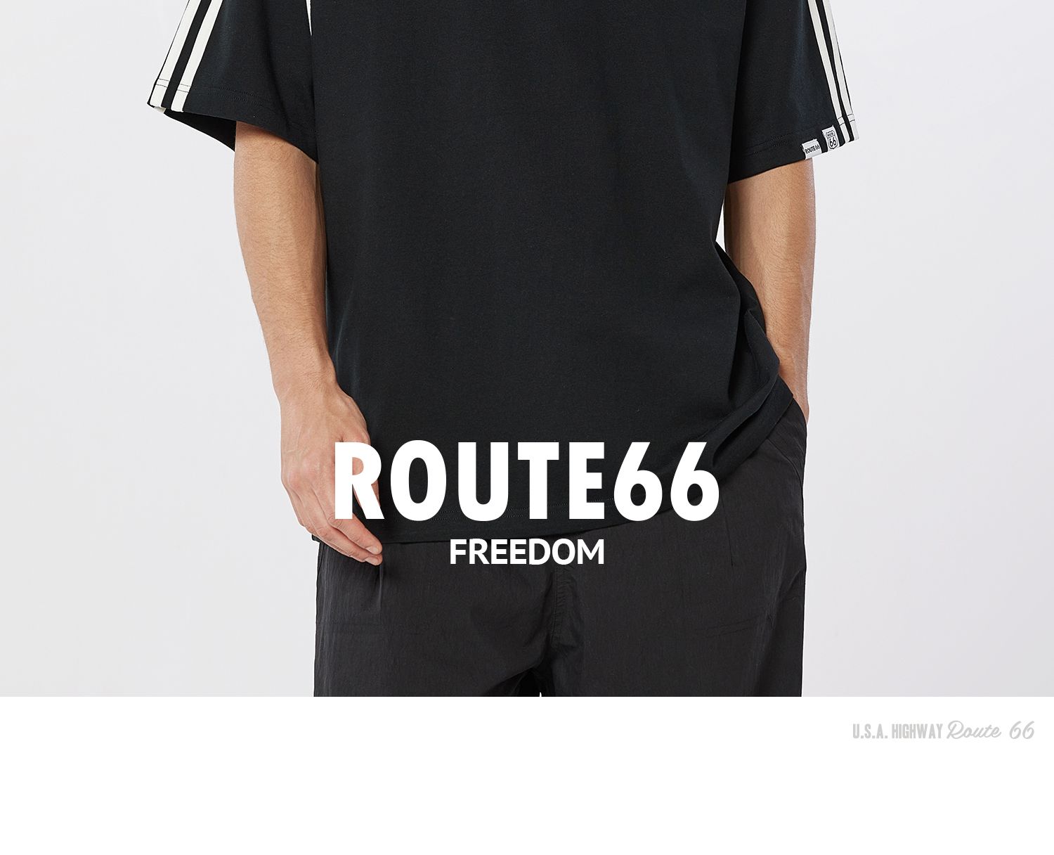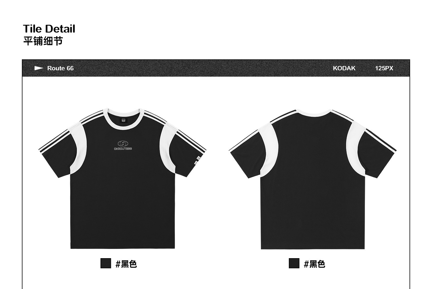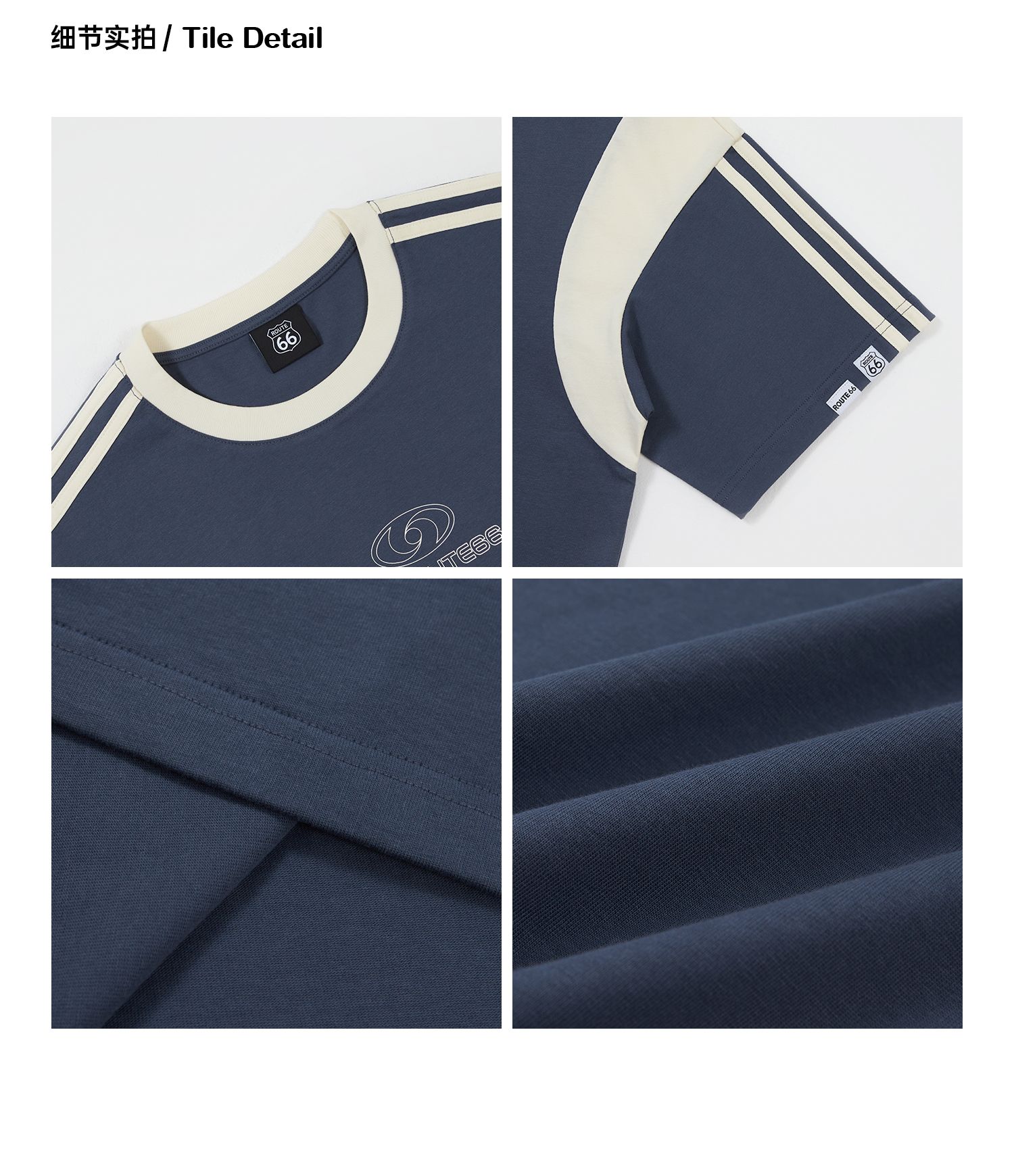商品名称:ROUTE66 美式复古撞色拼接短袖T恤男女同款宽松潮流插肩袖上衣