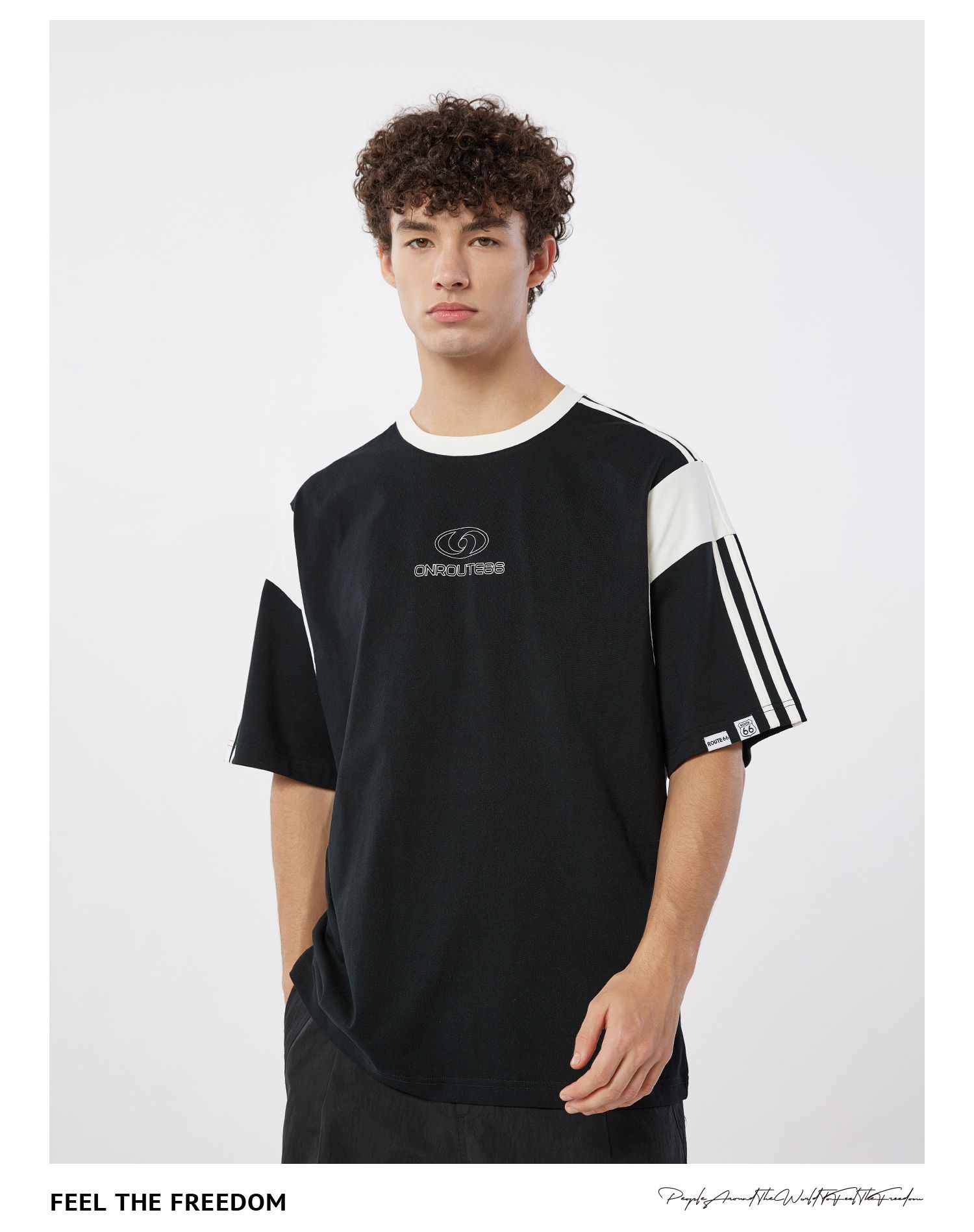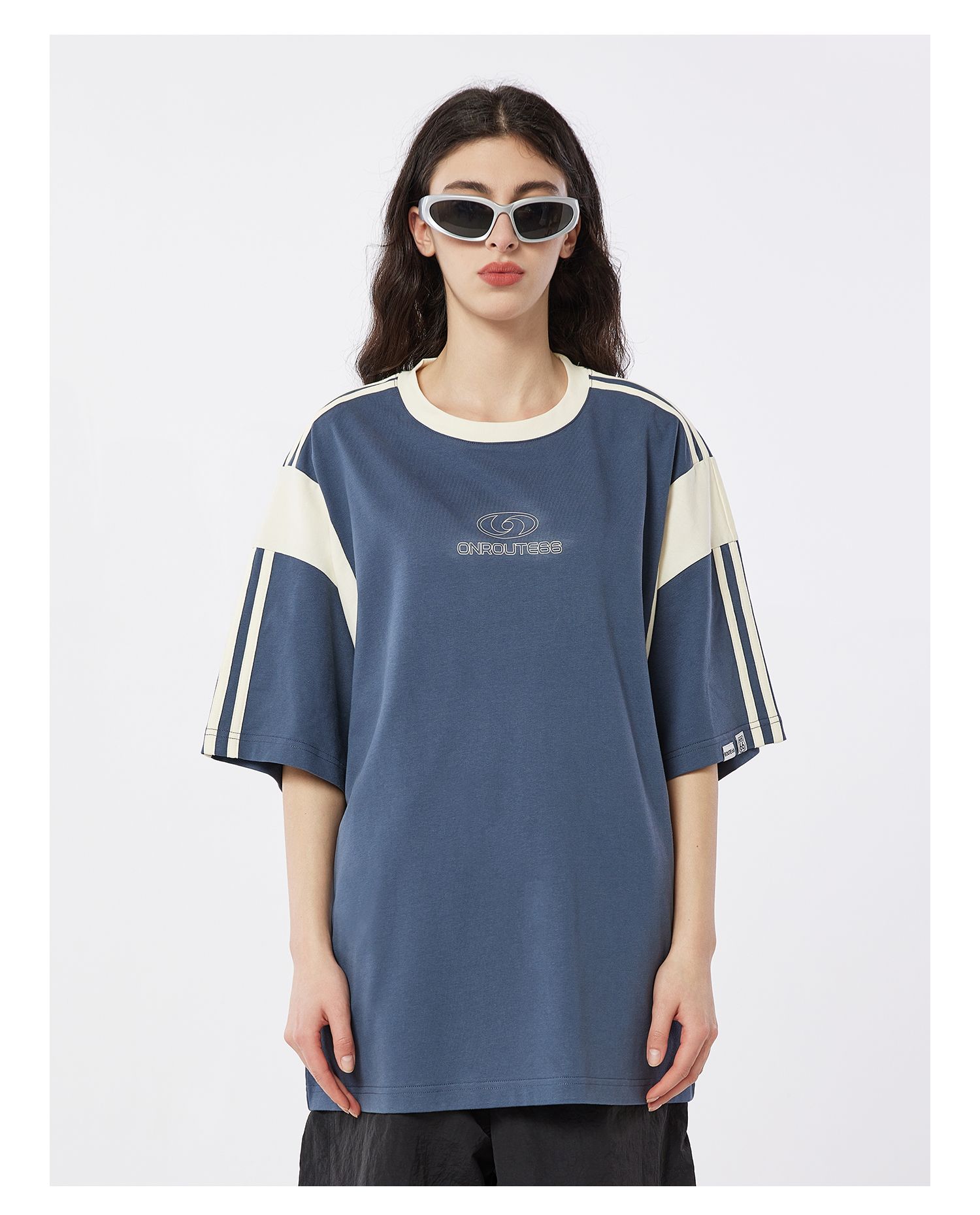 ROUTE66 美式复古撞色拼接短袖T恤男女同款宽松潮流插肩袖上衣