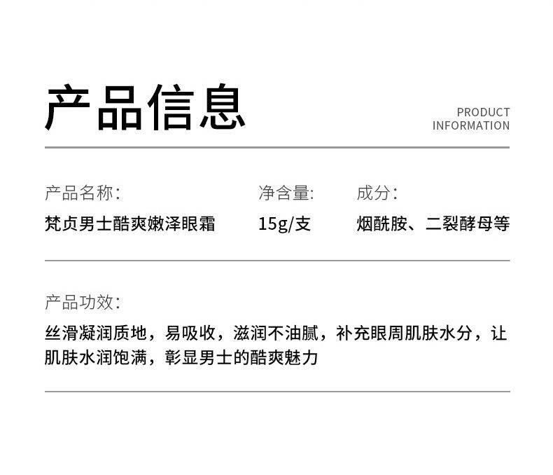 商品名称:梵贞 男士酷爽嫩泽眼霜15g 紧实眼周