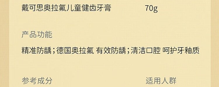 商品名称:戴可思(Dexter)儿童奥拉氟健齿牙膏 70g