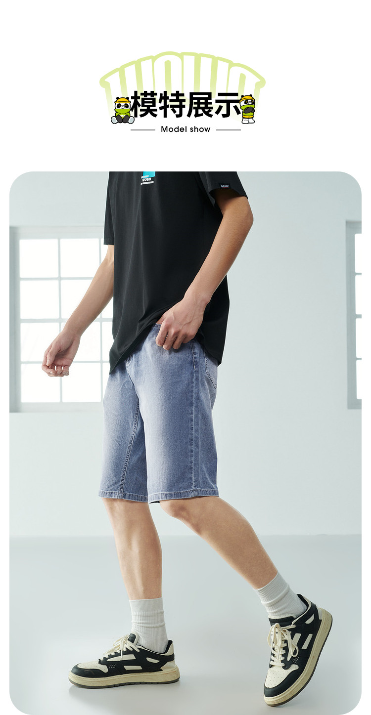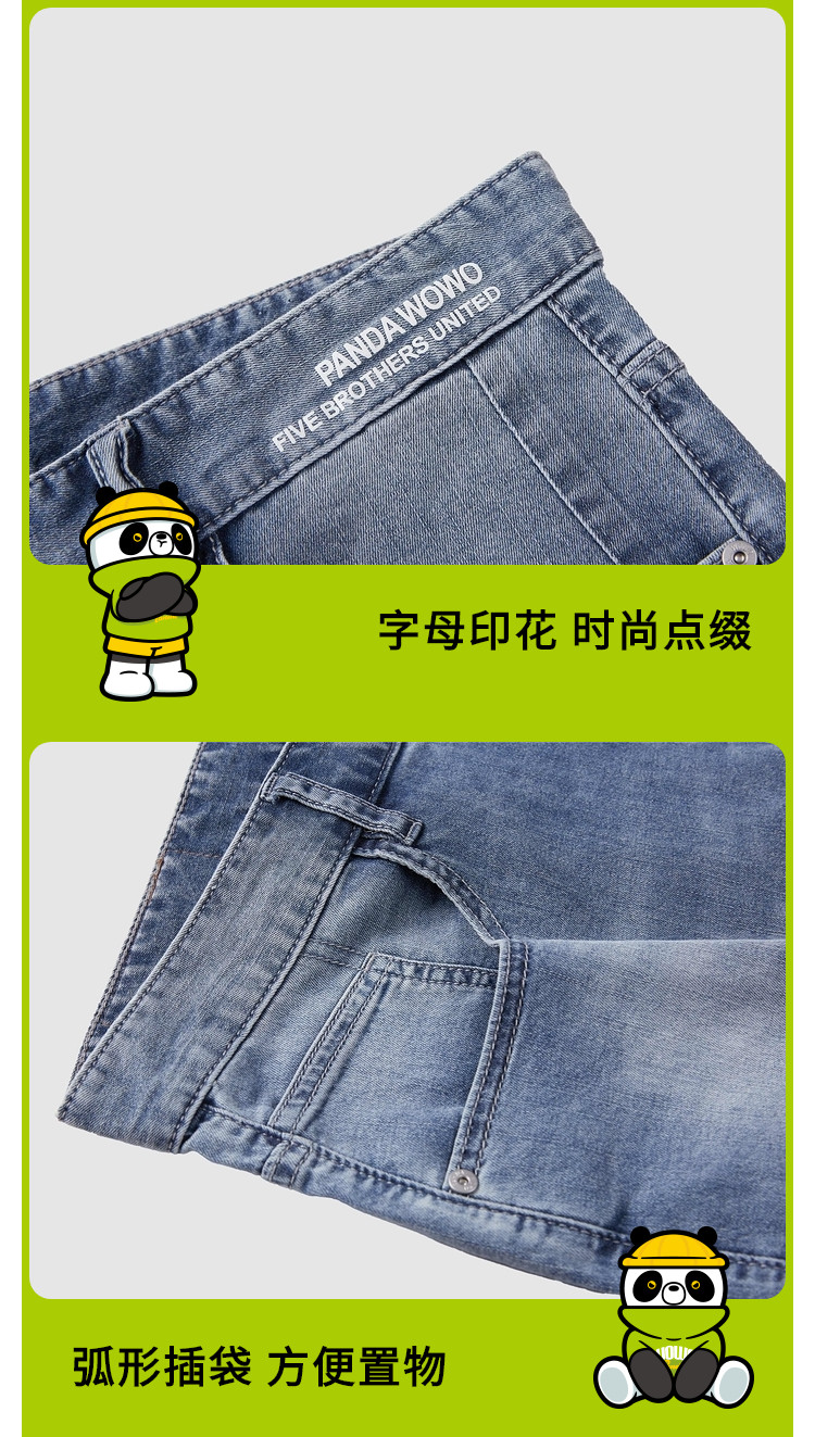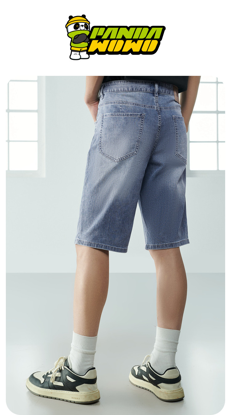 商品名称:【新国潮熊猫】夏季热销轻薄直筒五分男士牛仔中裤短裤 118536
