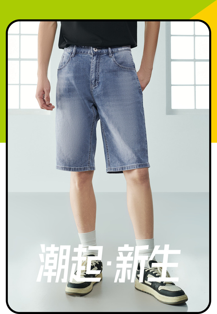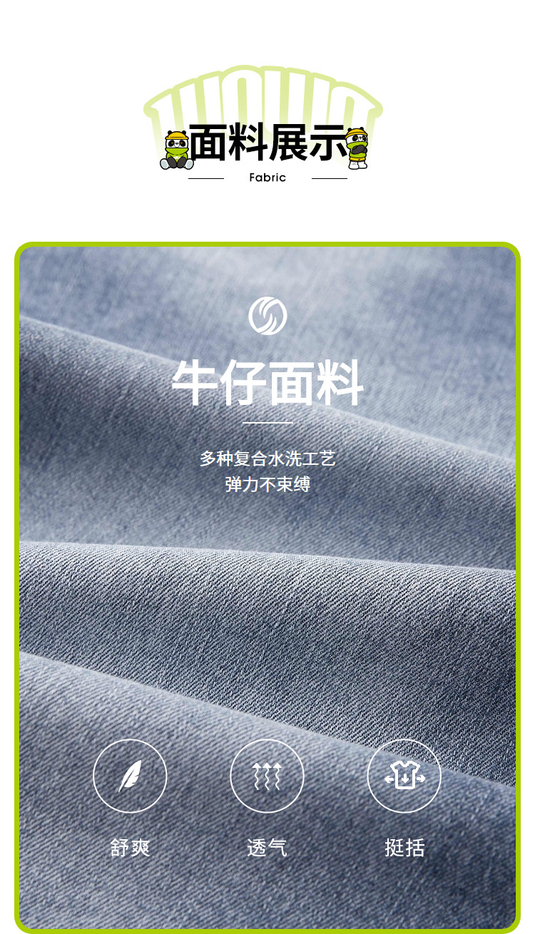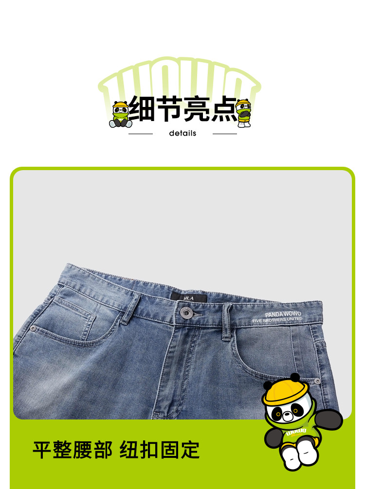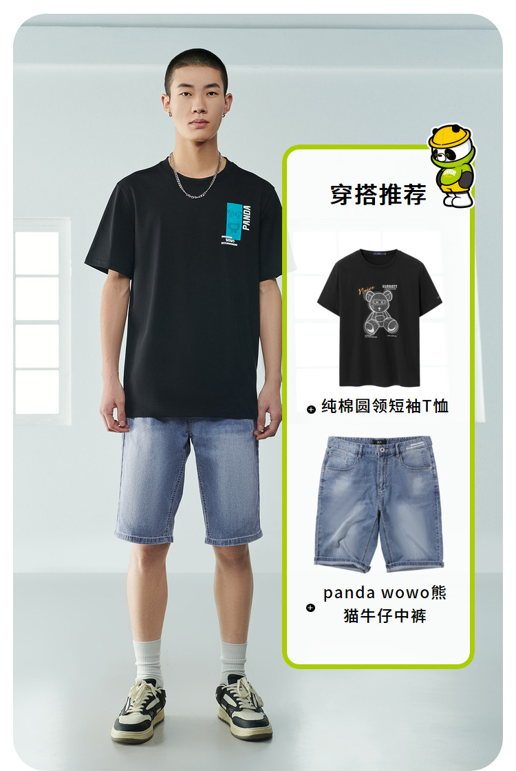 商品名称:【新国潮熊猫】夏季热销轻薄直筒五分男士牛仔中裤短裤 118536