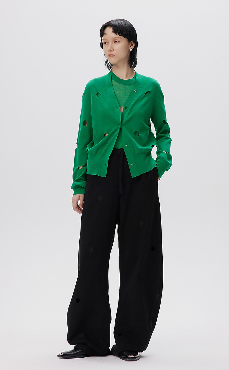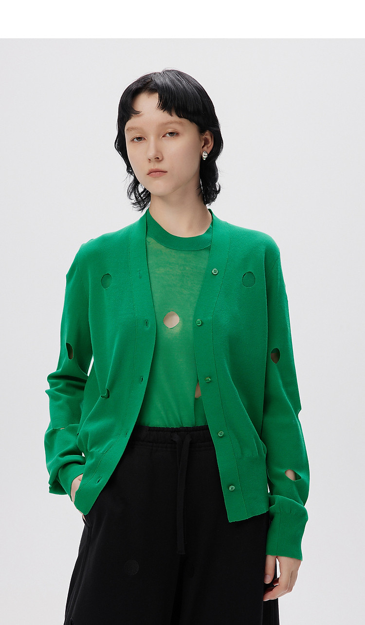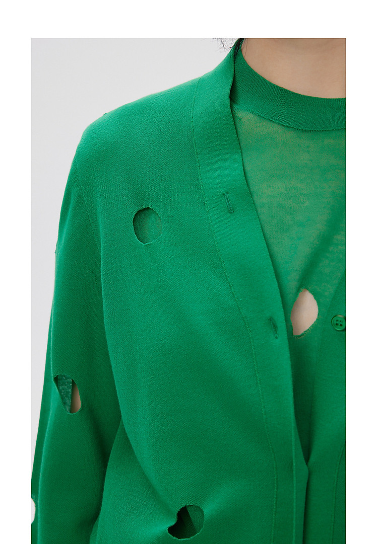秋毛针织衫镂空长袖开襟毛衫外套女 052107
