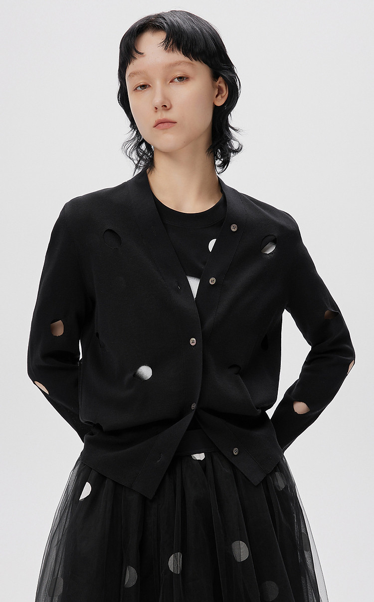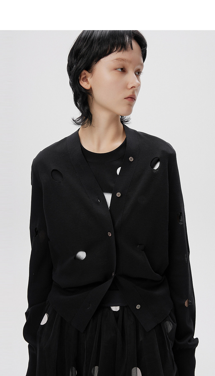 商品名称:秋毛针织衫镂空长袖开襟毛衫外套女 052107