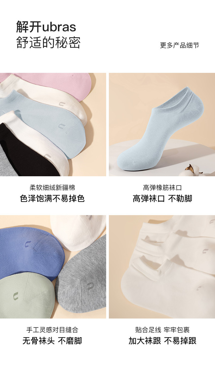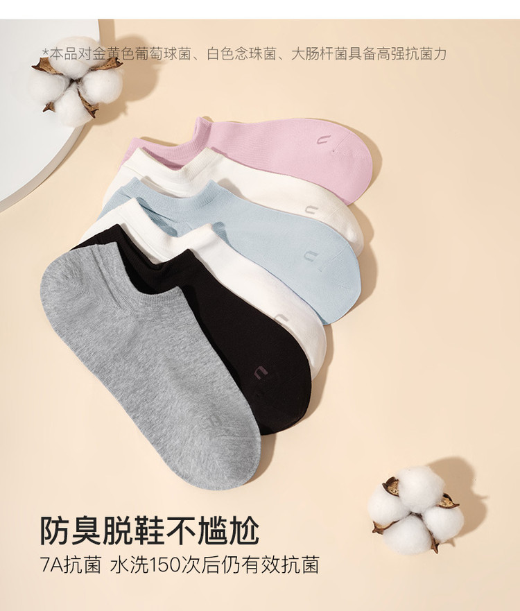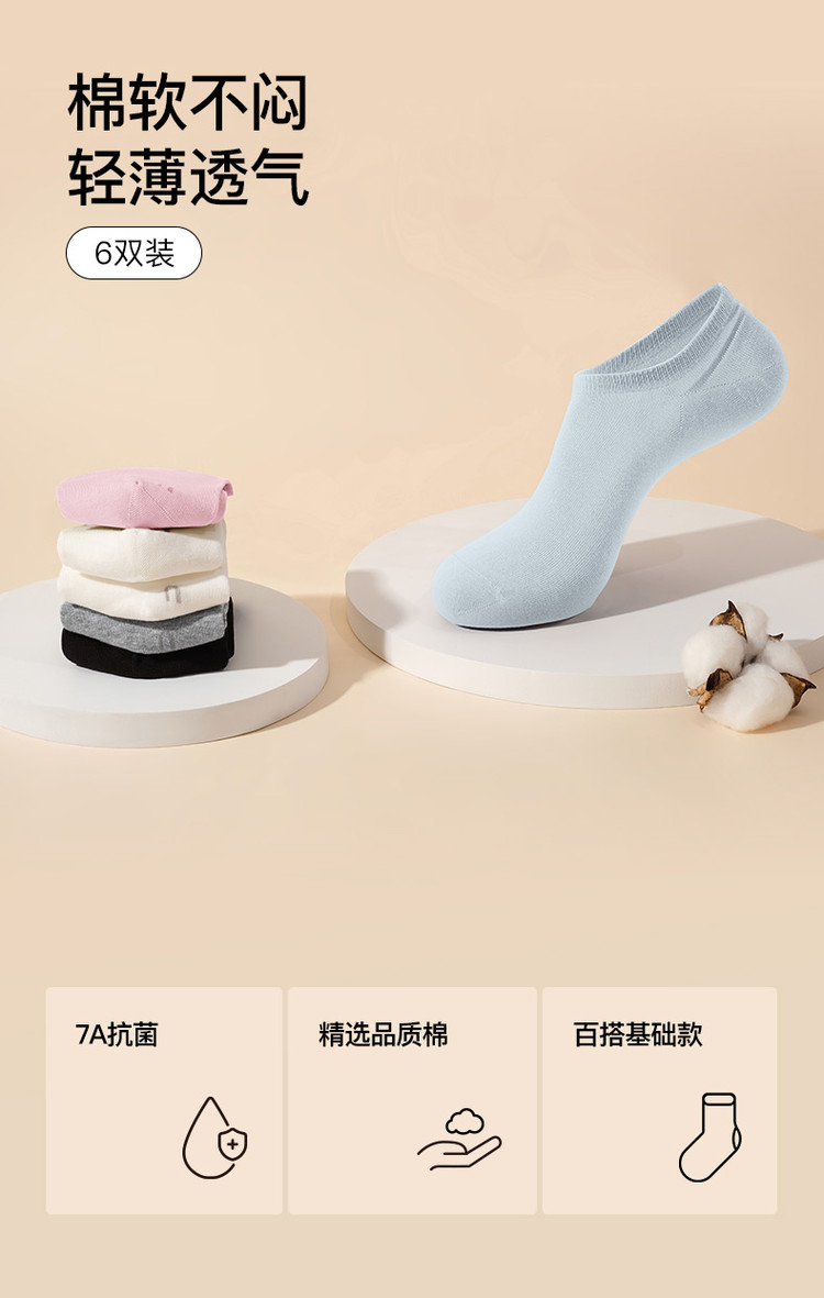 商品名称:【浅口袜不掉跟】7A抗菌女士船袜舒适亲肤袜子薄款夏天6双装 828160