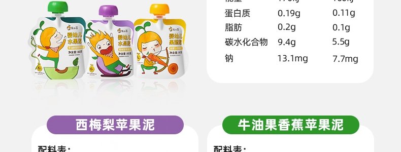 商品名称:窝小芽(WOXIAOYA)婴幼儿一周果泥 7种口味组合装 80g*7袋