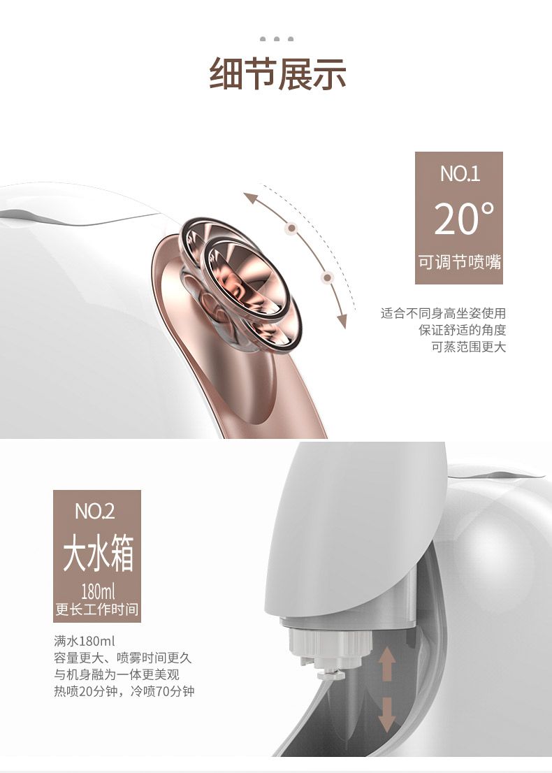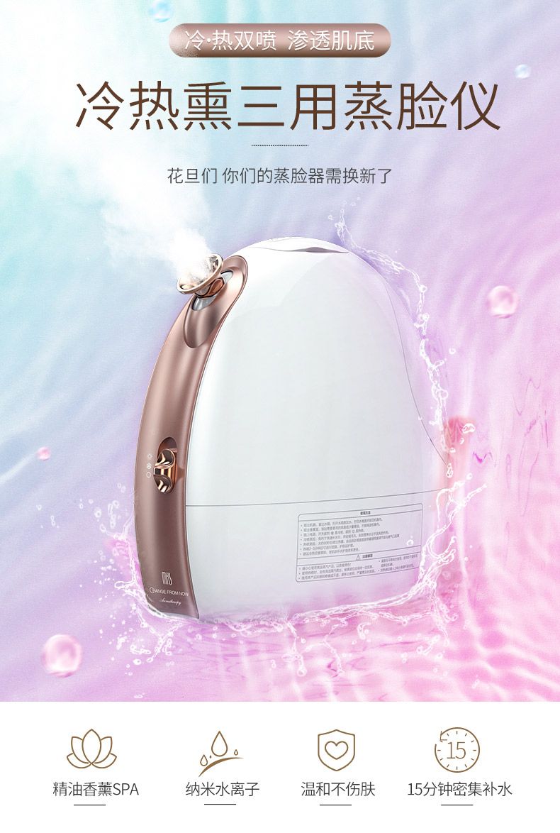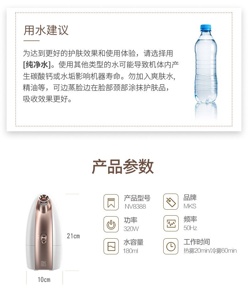 商品名称:MKS/美克斯蒸脸仪冷热双喷纳米喷雾补水仪美容脸部加湿蒸脸器家用NV8388