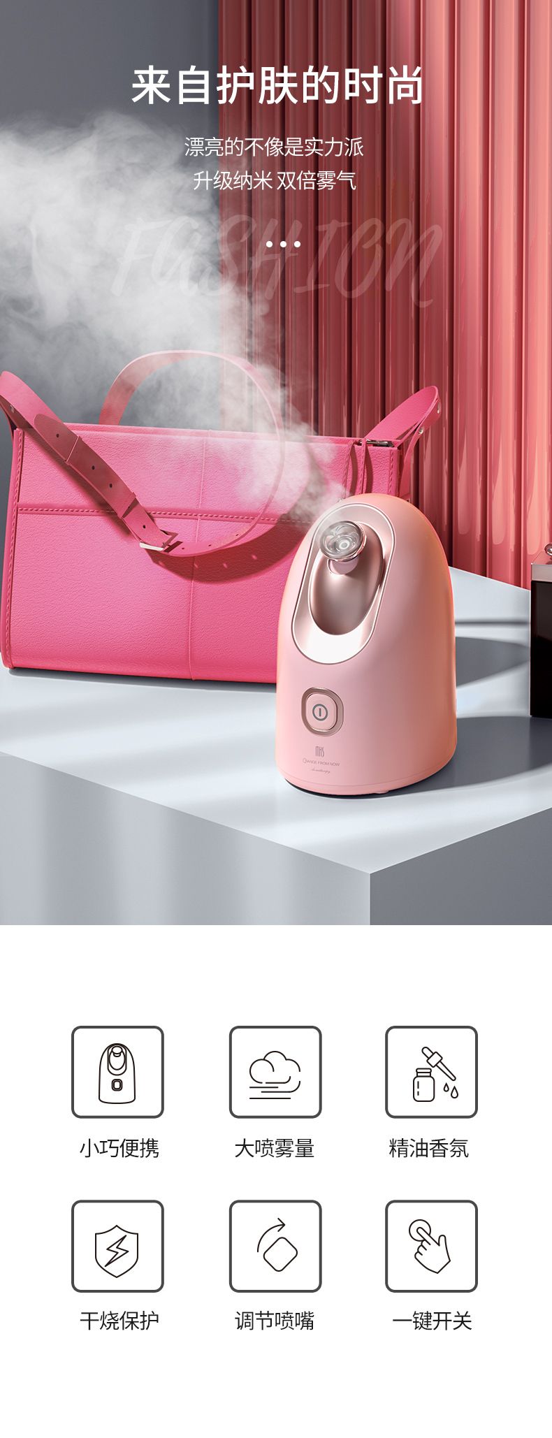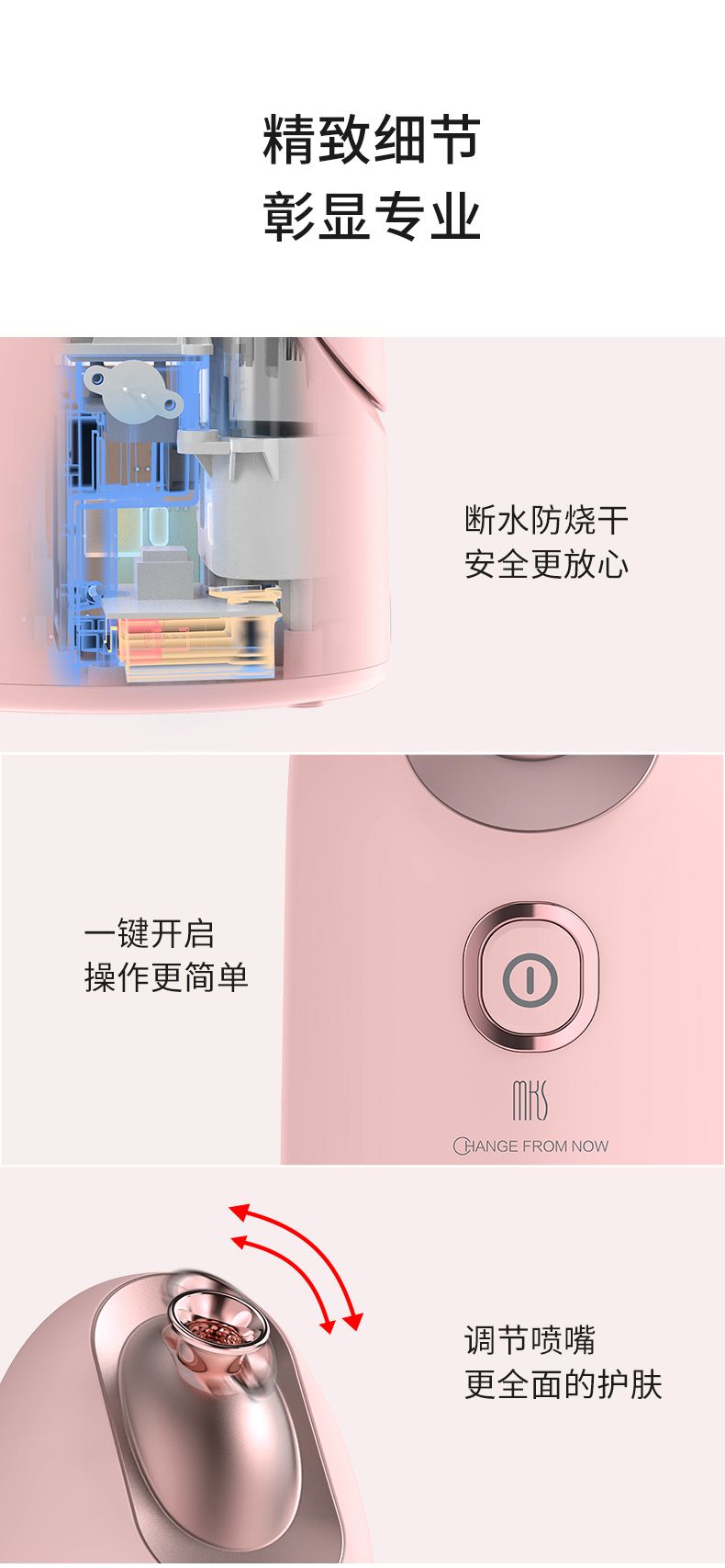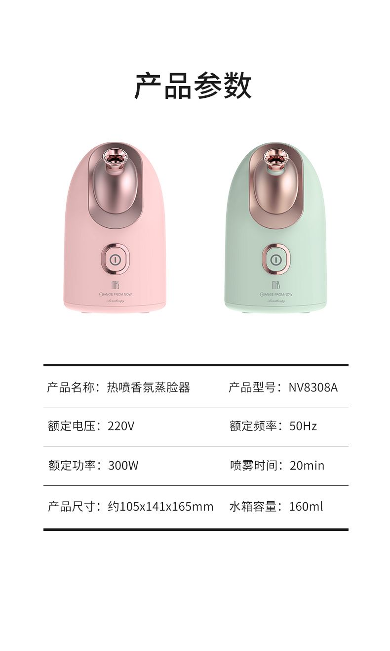 商品名称:MKS美克斯蒸脸器器热喷 纳米喷雾香薰蒸脸喷雾器家用NV8308A