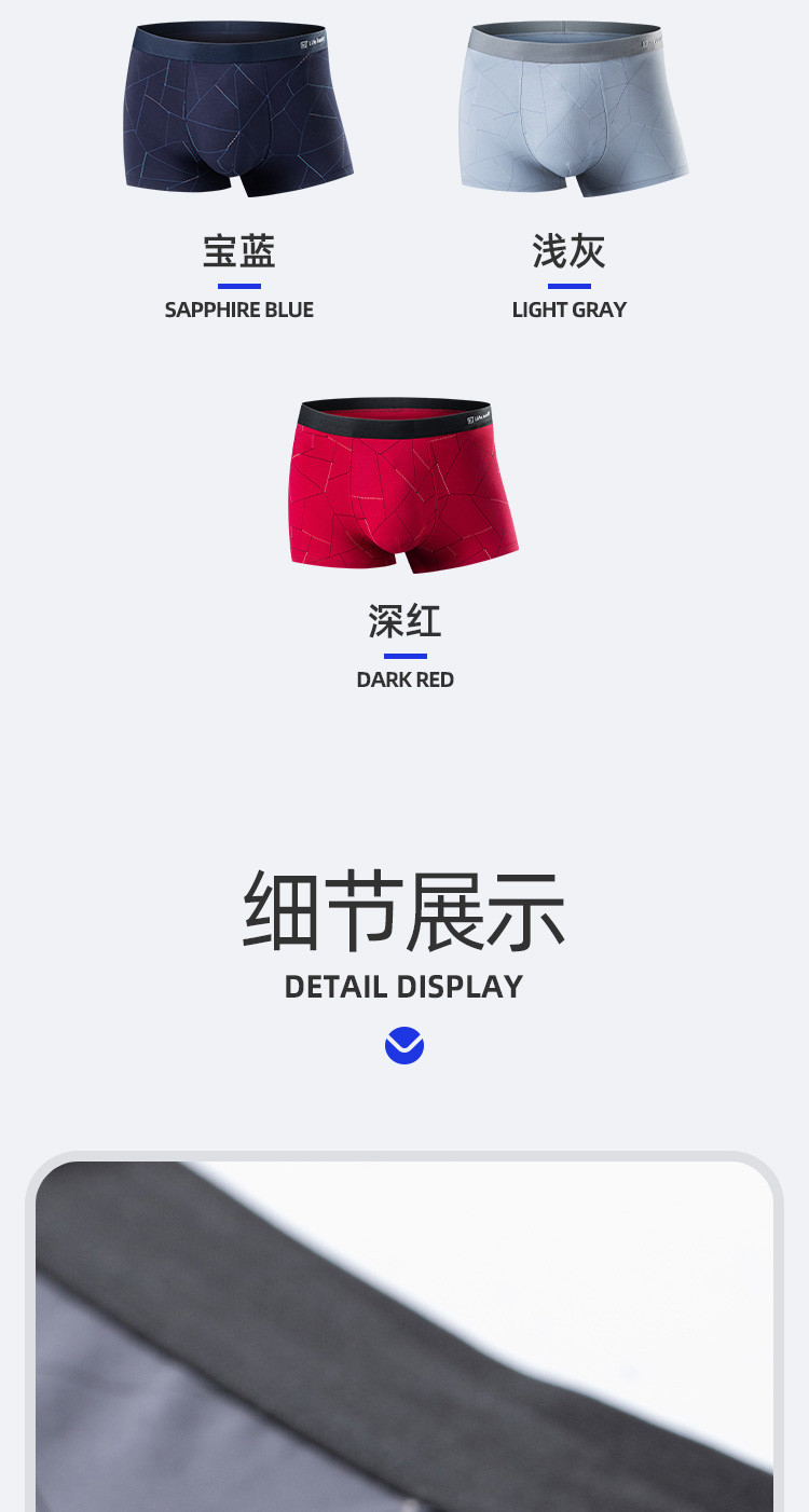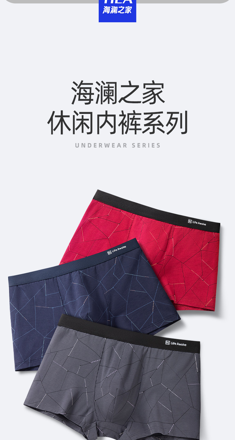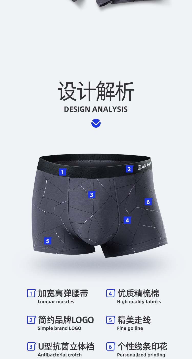 商品名称:【5A抑菌裆】3条装男士内裤平角印花夏季薄款透气四角短裤衩男 181210