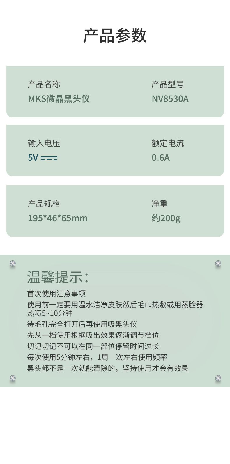 商品名称:MKS/美克斯吸黑头神器电动小气泡去粉刺美容仪器毛孔清洁吸出器NV8530A