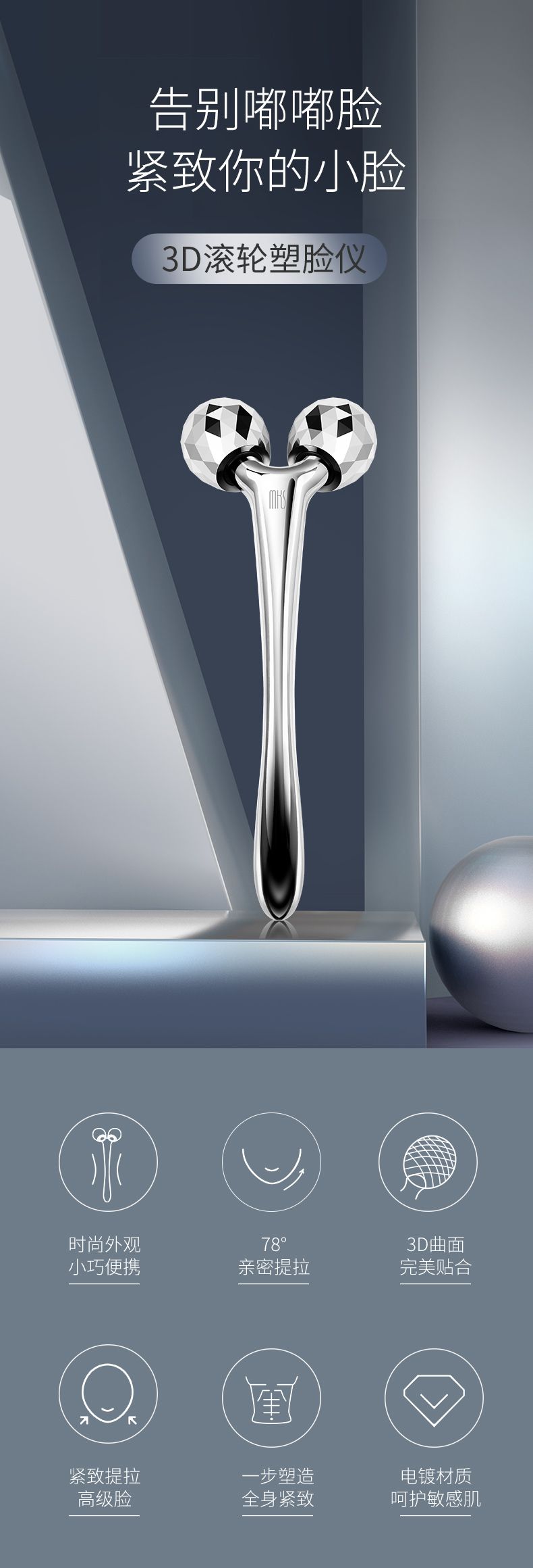 MKS美克斯器美容仪V脸部按摩提拉紧致双下巴黄金棒滚轮式NV8510A