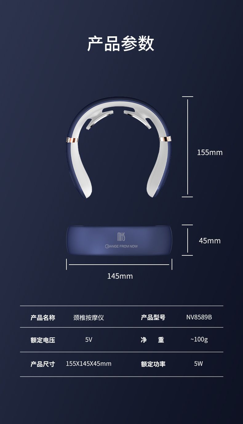 商品名称:MKS/美克斯颈椎按摩器颈部按摩仪多功能脖子振动脉冲家用护颈仪肩NV8589B