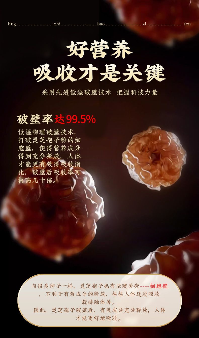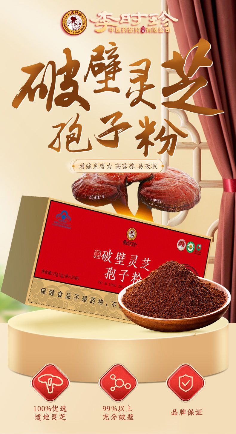李时珍 破壁灵芝孢子粉增强头道粉高含量中老年自用高档送礼正品