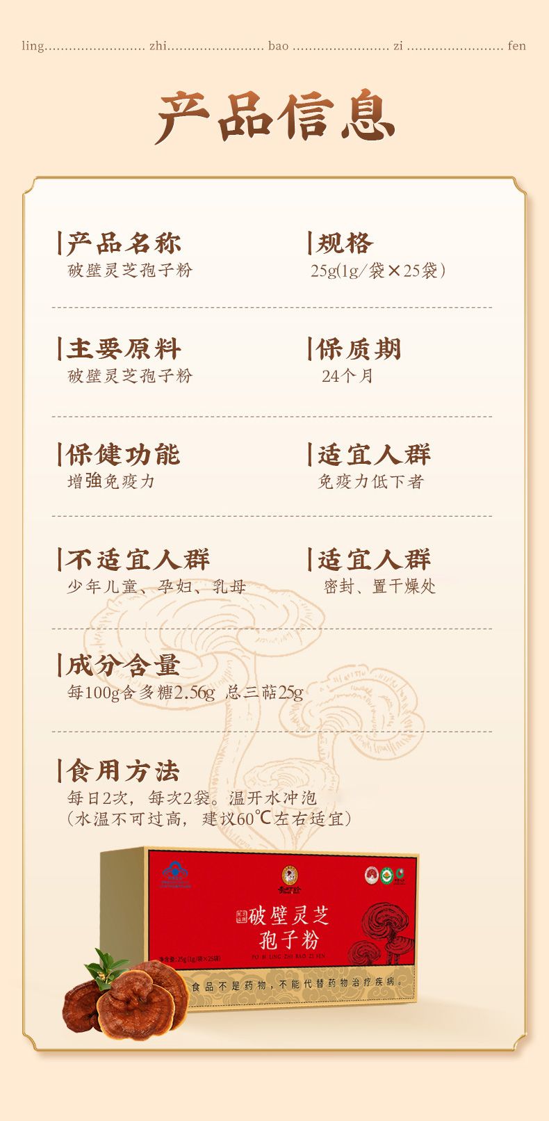 商品名称:李时珍 破壁灵芝孢子粉增强头道粉高含量中老年自用高档送礼正品