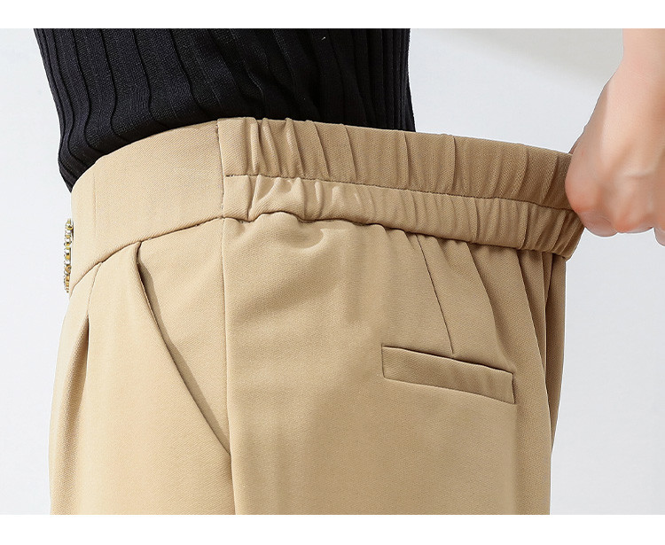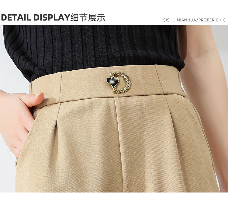 【至醇150D弹力斜纹】秋设计感连腰褶裥拼接宽松藏肉女休闲裤 458689