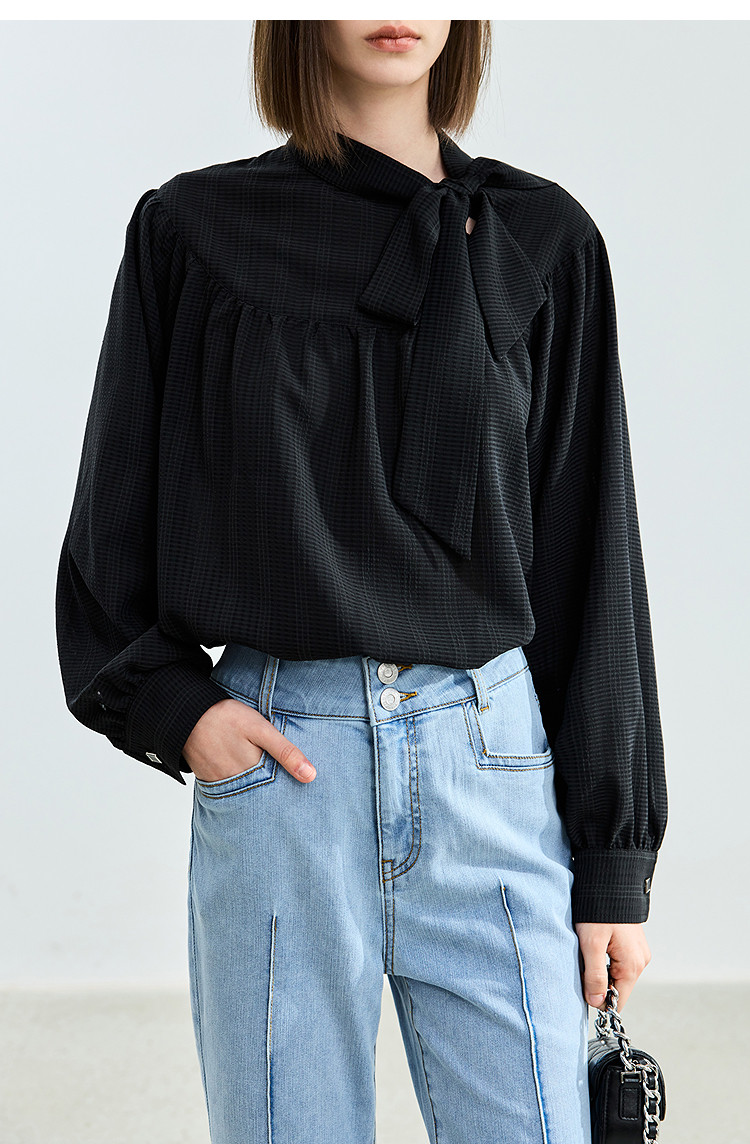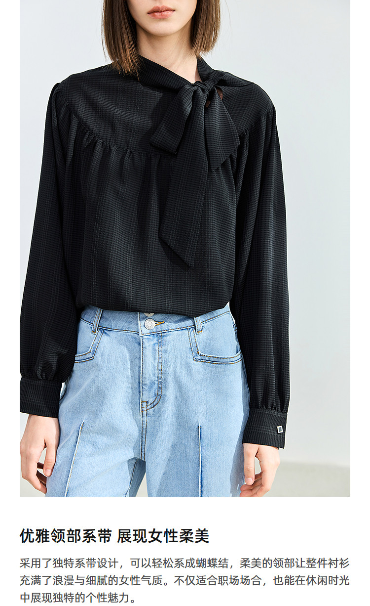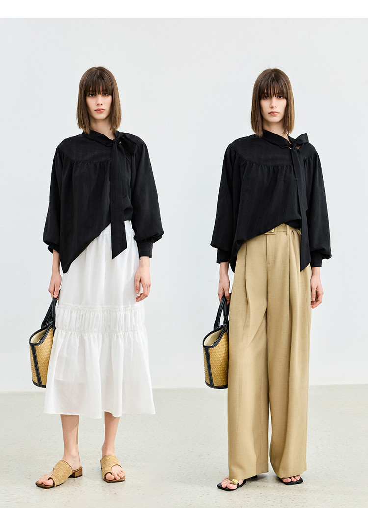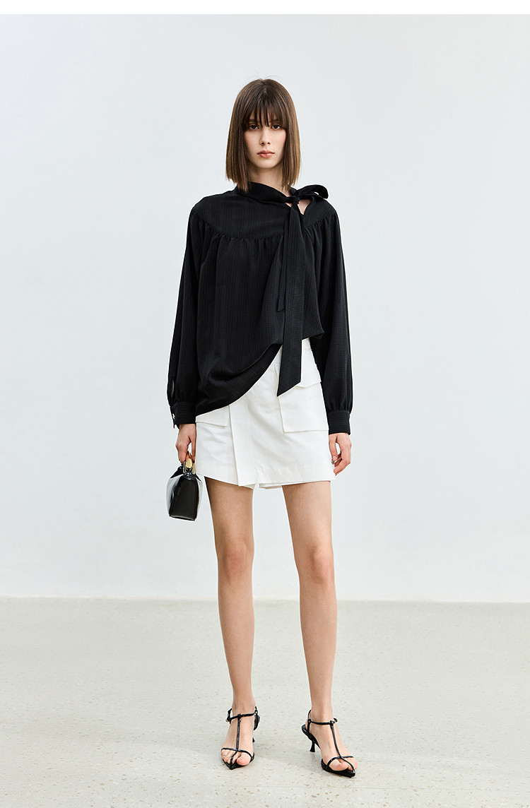 商品名称:春季法式优雅衬衫女气质系带都市通勤洋气宽松垂坠感长袖衬衫女 767067