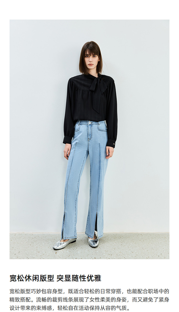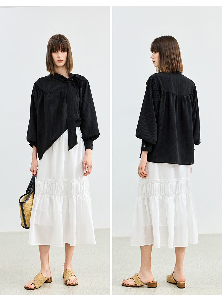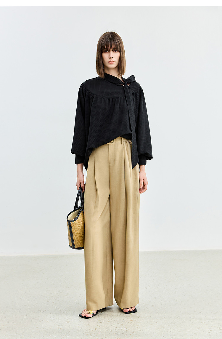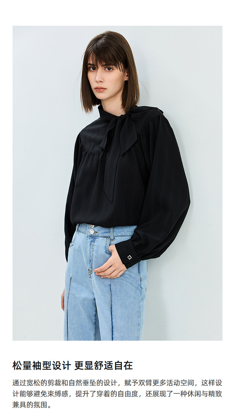 商品名称:春季法式优雅衬衫女气质系带都市通勤洋气宽松垂坠感长袖衬衫女 767067