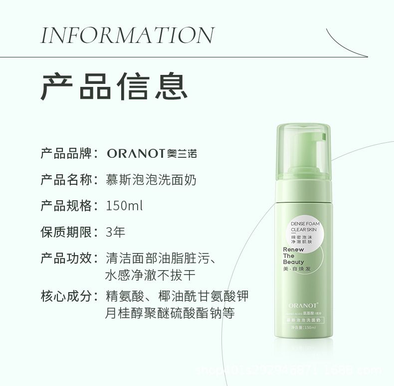 商品名称:奥兰诺 氨基酸泡沫慕斯洁面乳 150ml 清洁毛孔控油男女专用