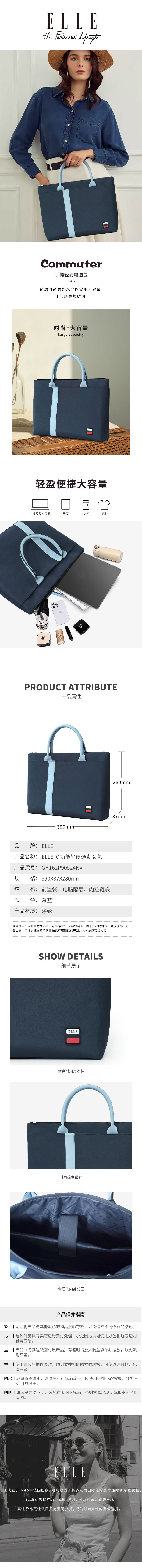 商品名称:ELLE手提轻便电脑包GH162P90524NV深蓝