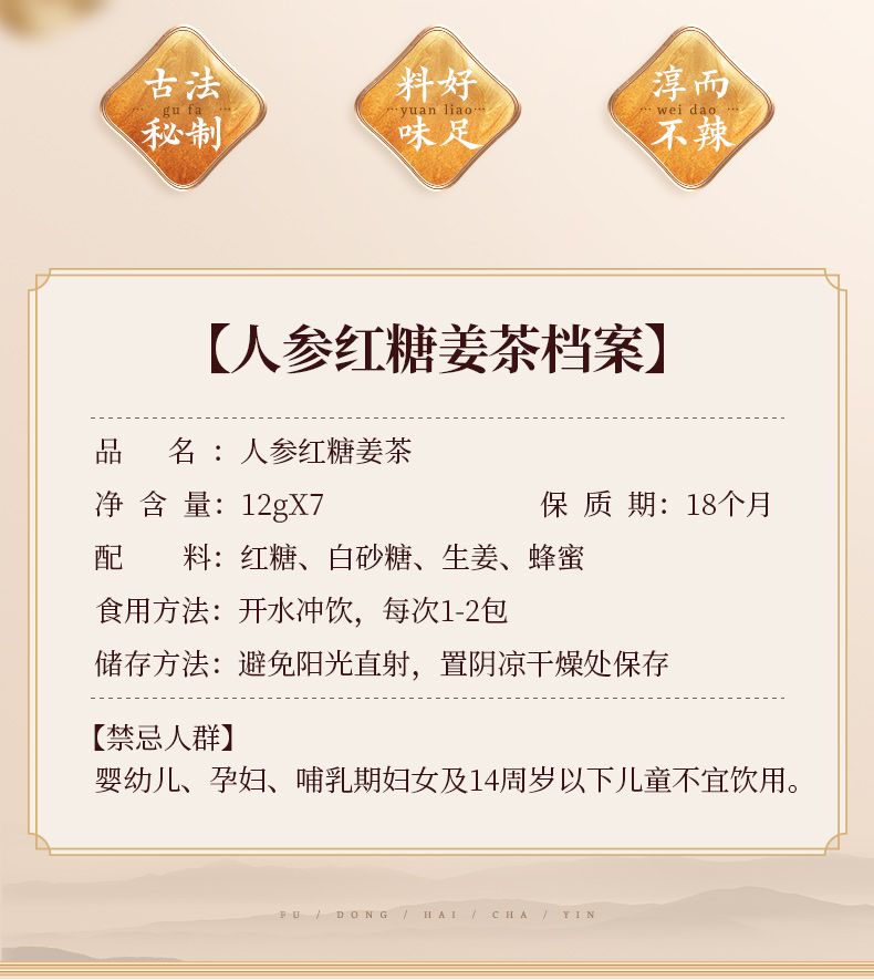 商品名称:【福东海】人参红糖姜茶 84克/盒FDH02010134