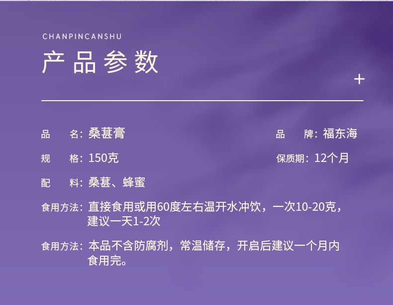 商品名称:【福东海】桑椹膏 150g 瓶装 fdhss150g