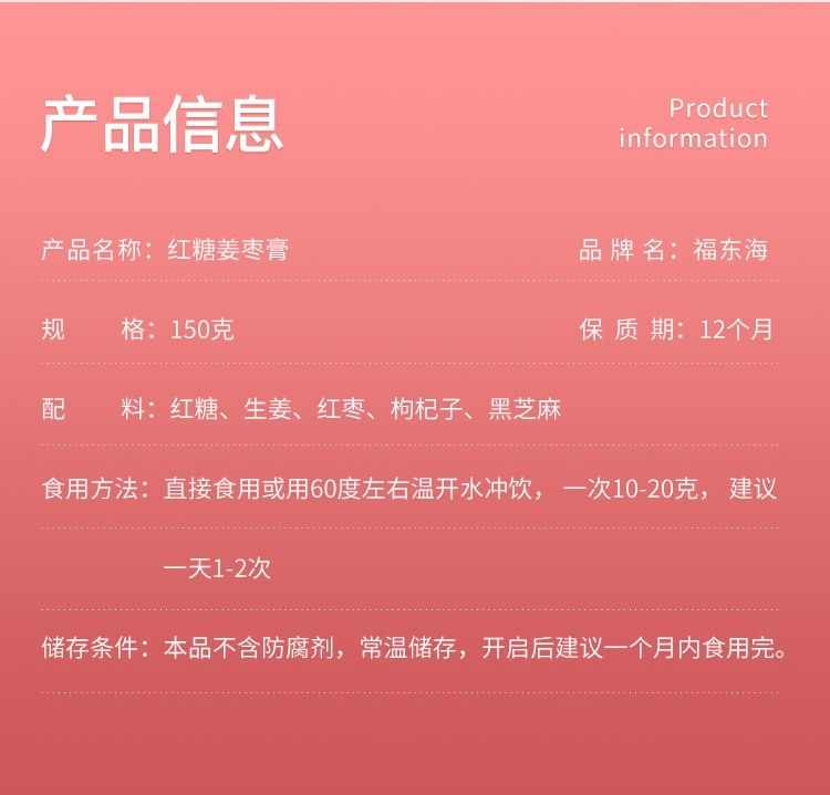 商品名称:【福东海】红糖姜枣膏150克/瓶 HTJZG-150G