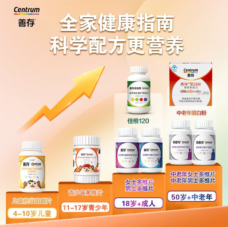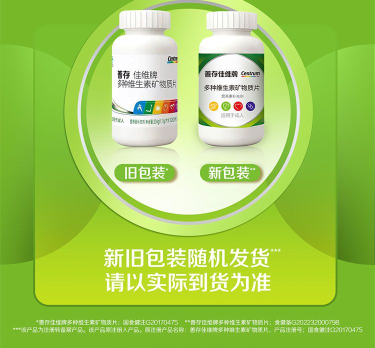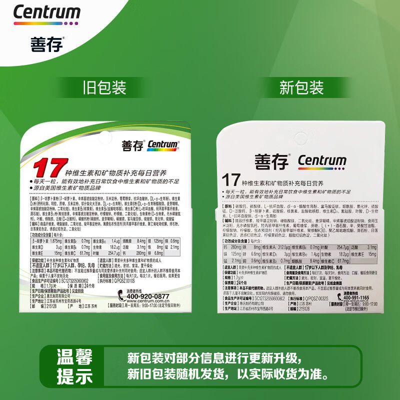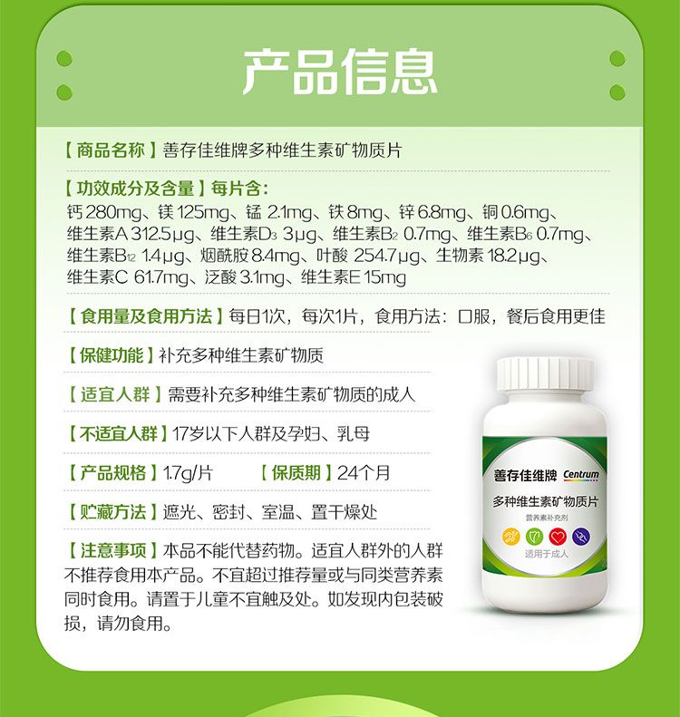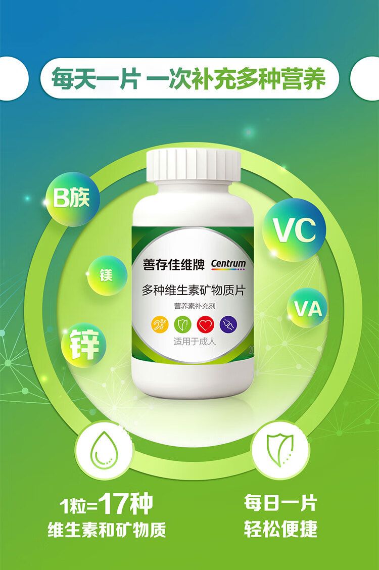 商品名称:善存佳维片 复合维生素矿物质 含维生素c维生素e维生素b烟酰胺叶酸 男士女士中老年保健品全家适用120片装