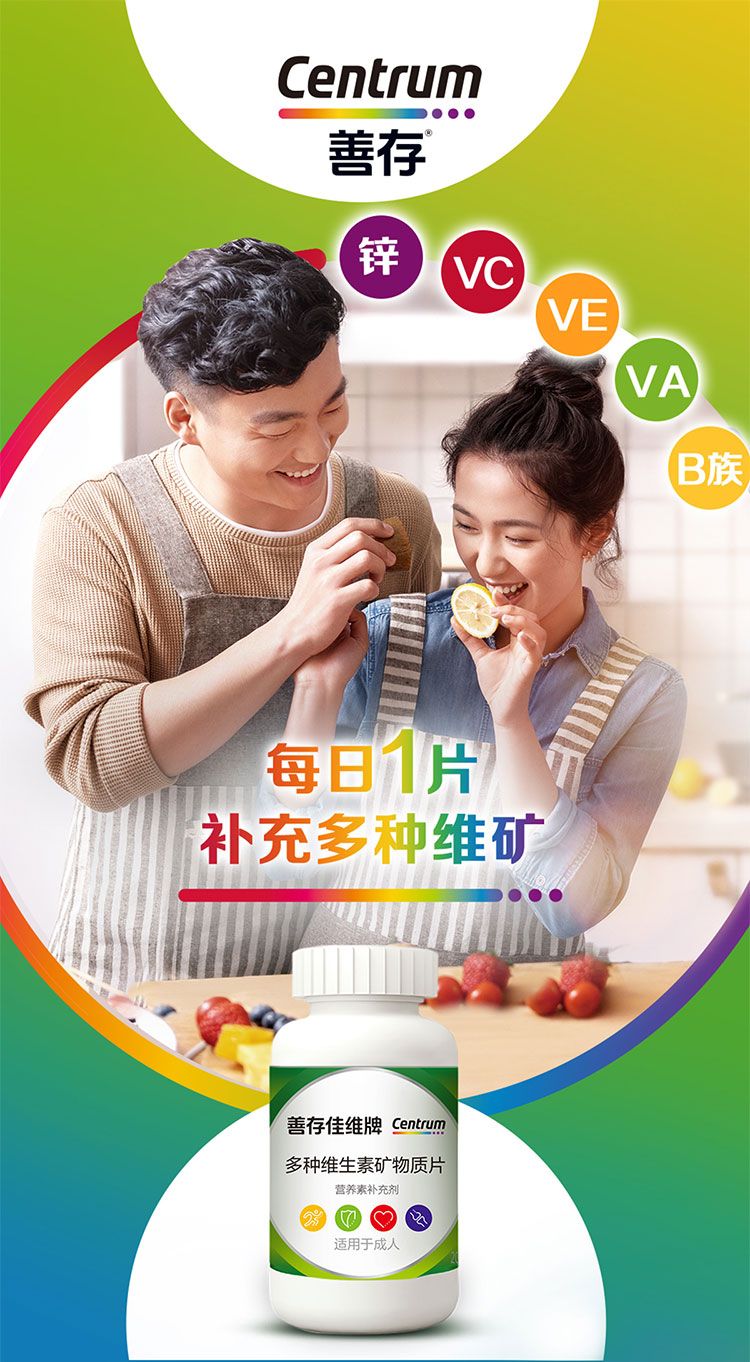 善存佳维片 复合维生素矿物质 含维生素c维生素e维生素b烟酰胺叶酸 男士女士中老年保健品全家适用120片装