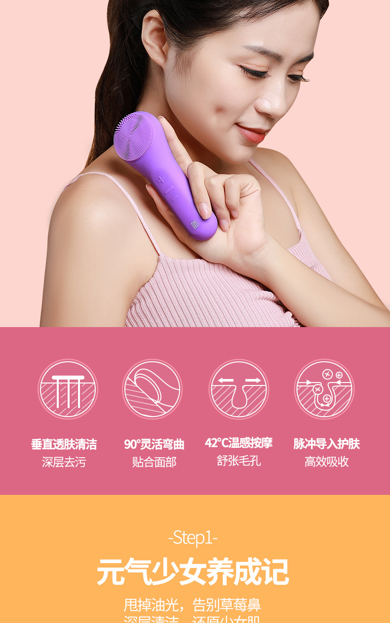 商品名称:MKS/美克斯硅胶电动洗脸仪器女脸部黑头毛孔清洁深层自动洁面神器NV8295