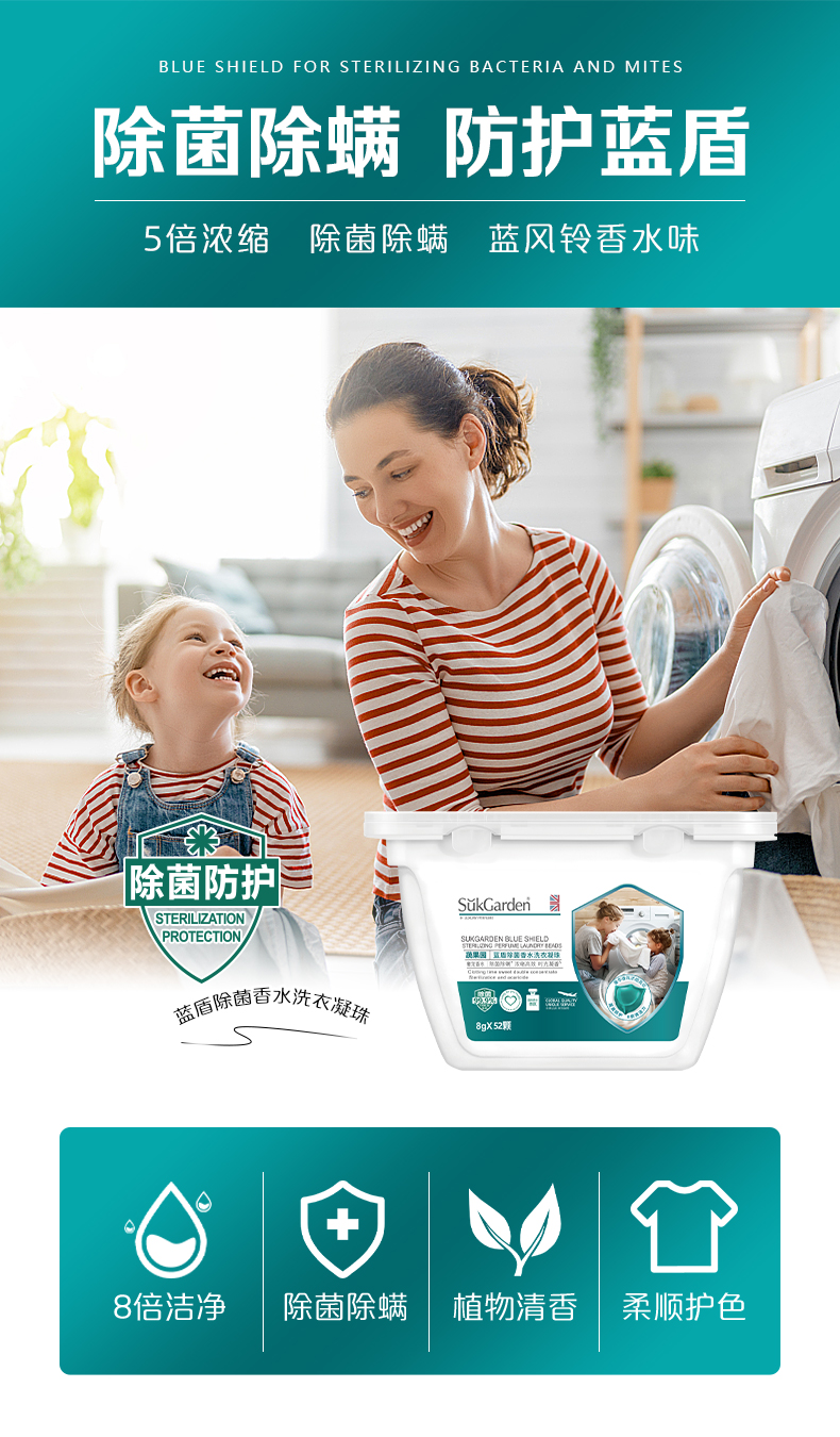 蔬果园蓝盾香水洗衣凝珠-3+5 除螨持久留香