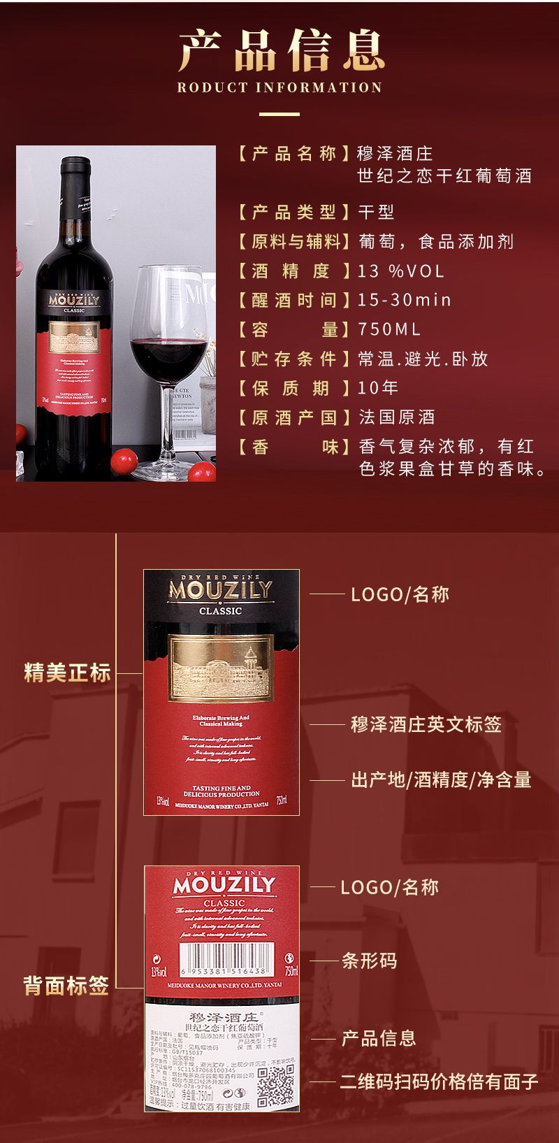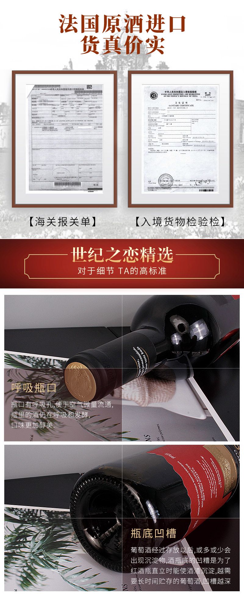 商品名称:法国进口 穆泽酒庄世纪之恋干红葡萄酒红酒整箱高档浮雕拜访送礼