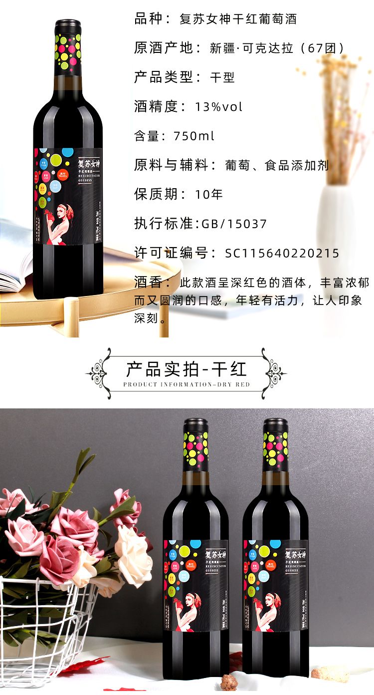 商品名称:醉红驼国产新疆葡萄酒复苏女神干红葡萄酒整箱750ml*6支甄选