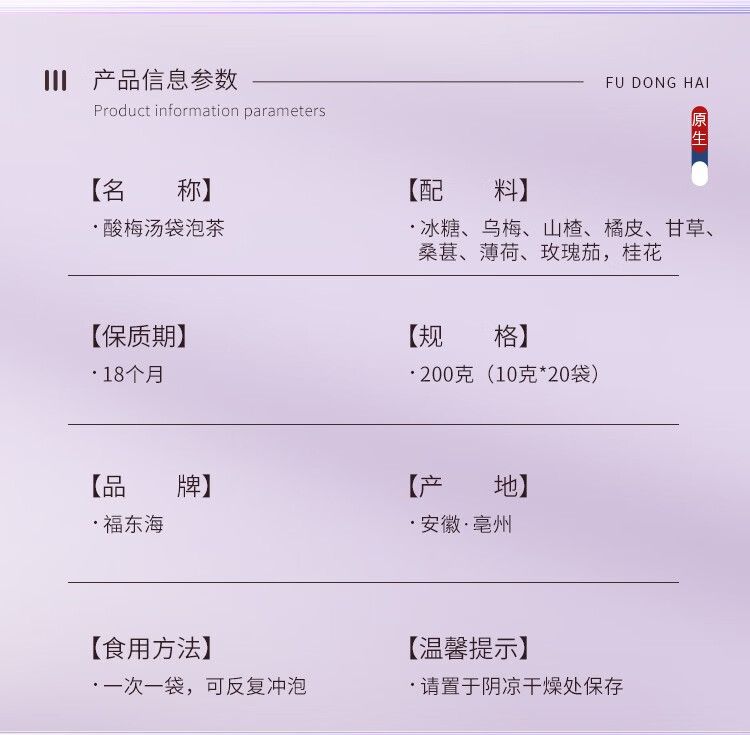 商品名称:【福东海】酸梅汤200克(10克*20袋)/盒FDH02010178