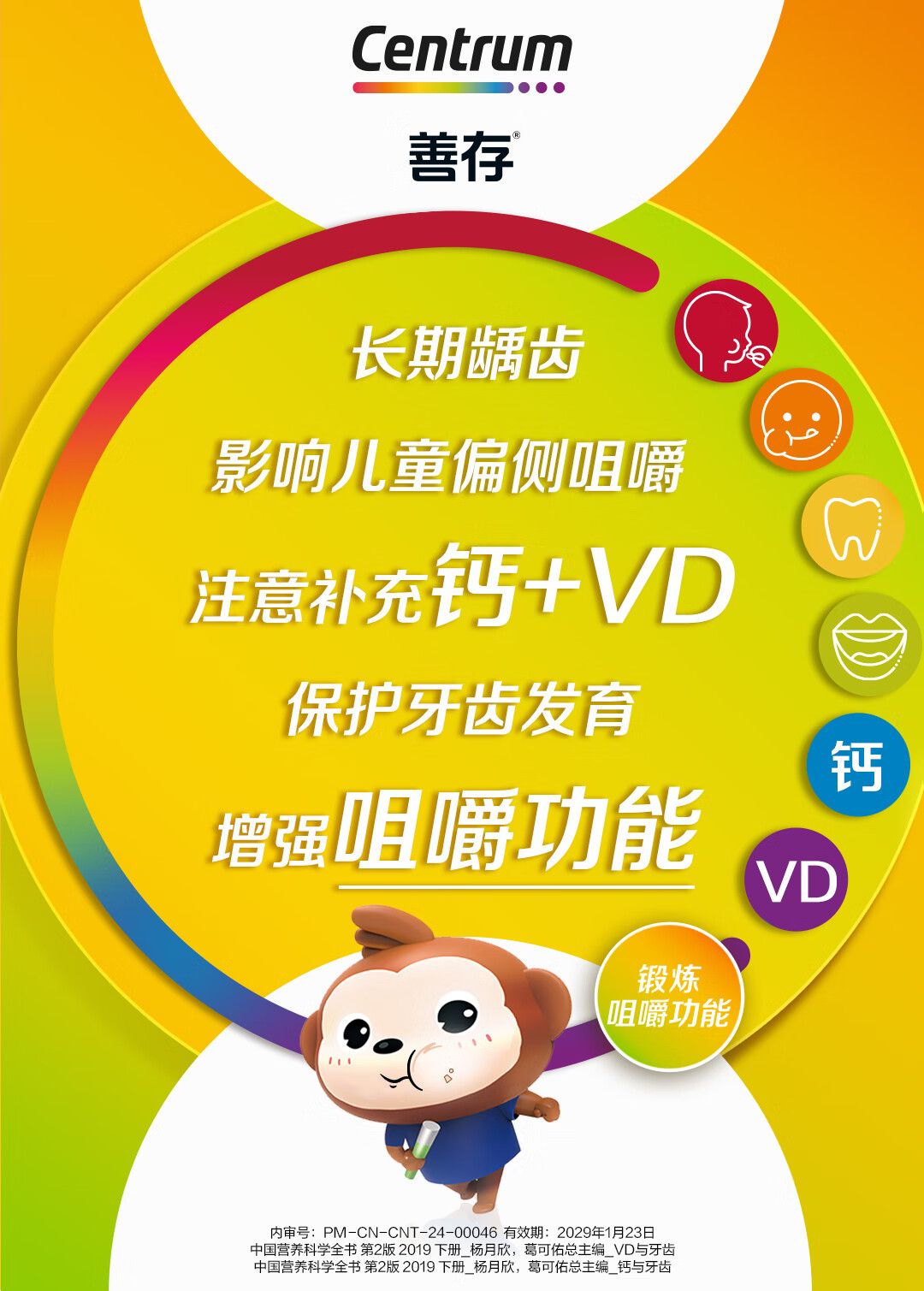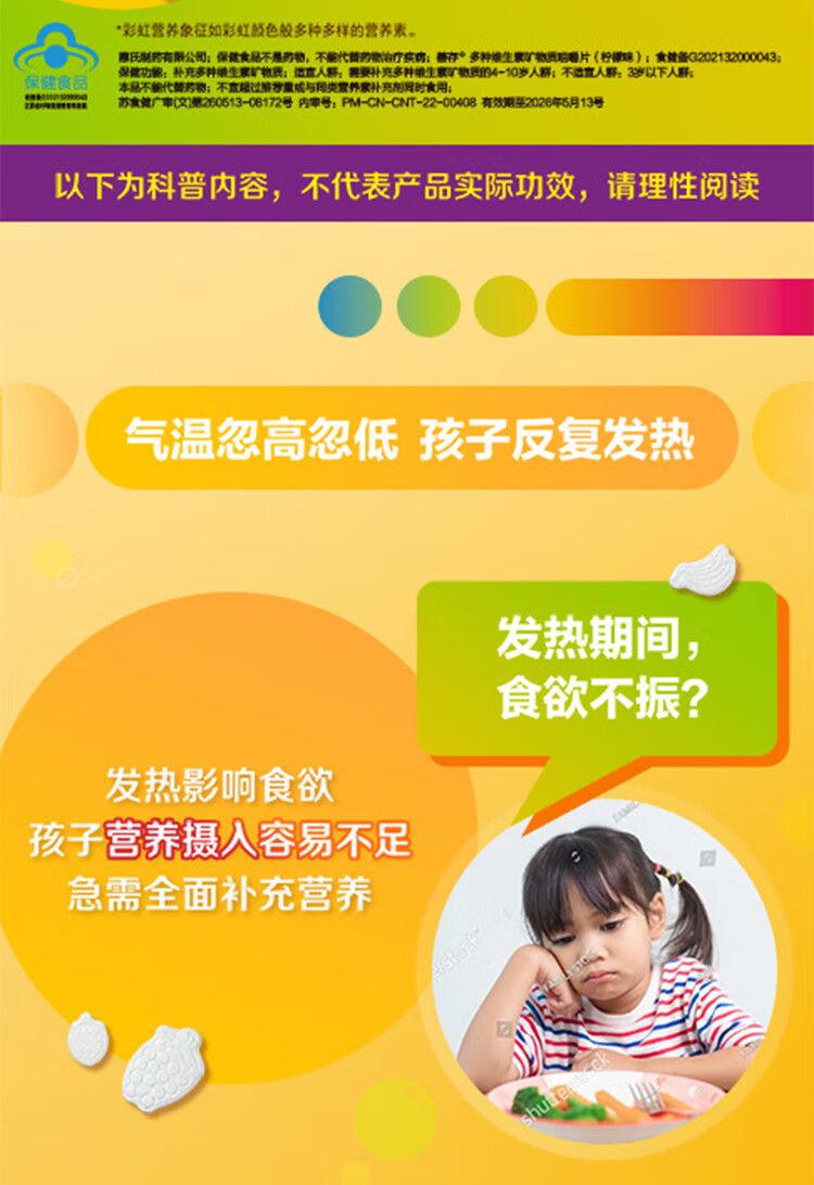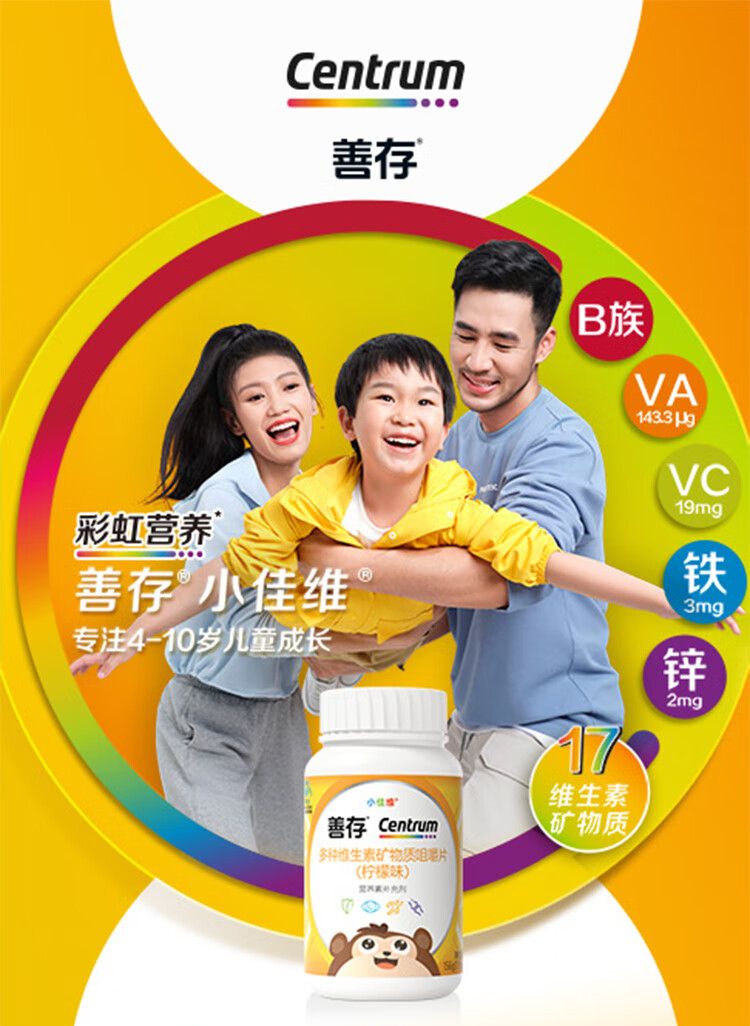 商品名称:善存 儿童钙铁锌 维生素d3维生素c钙镁锌片 儿童复合维生素矿物质咀嚼片 小佳维4-10岁富含维c vd 维b维e 80