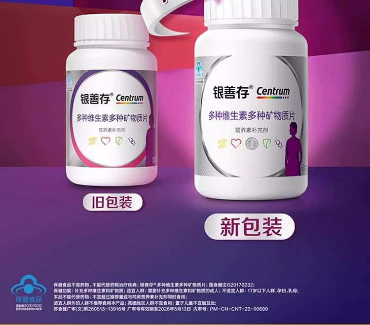 善存银善存中老年女士复合维生素矿物质片50岁以上维生素C维生素e保健品 含烟酰胺钙铁锌160片新旧包装随机发