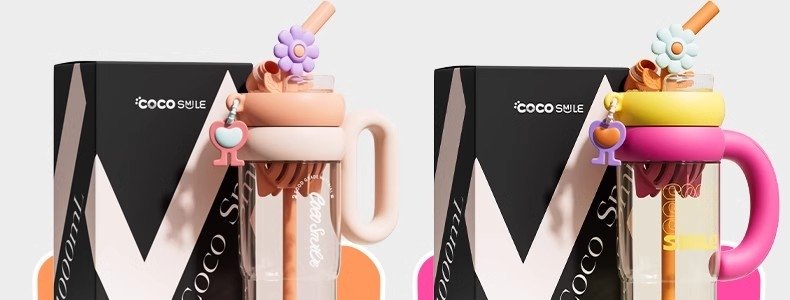 商品名称:可可猫(Coco smile)花朵转转月牙提手杯(TRITAN)1000ml-粉色