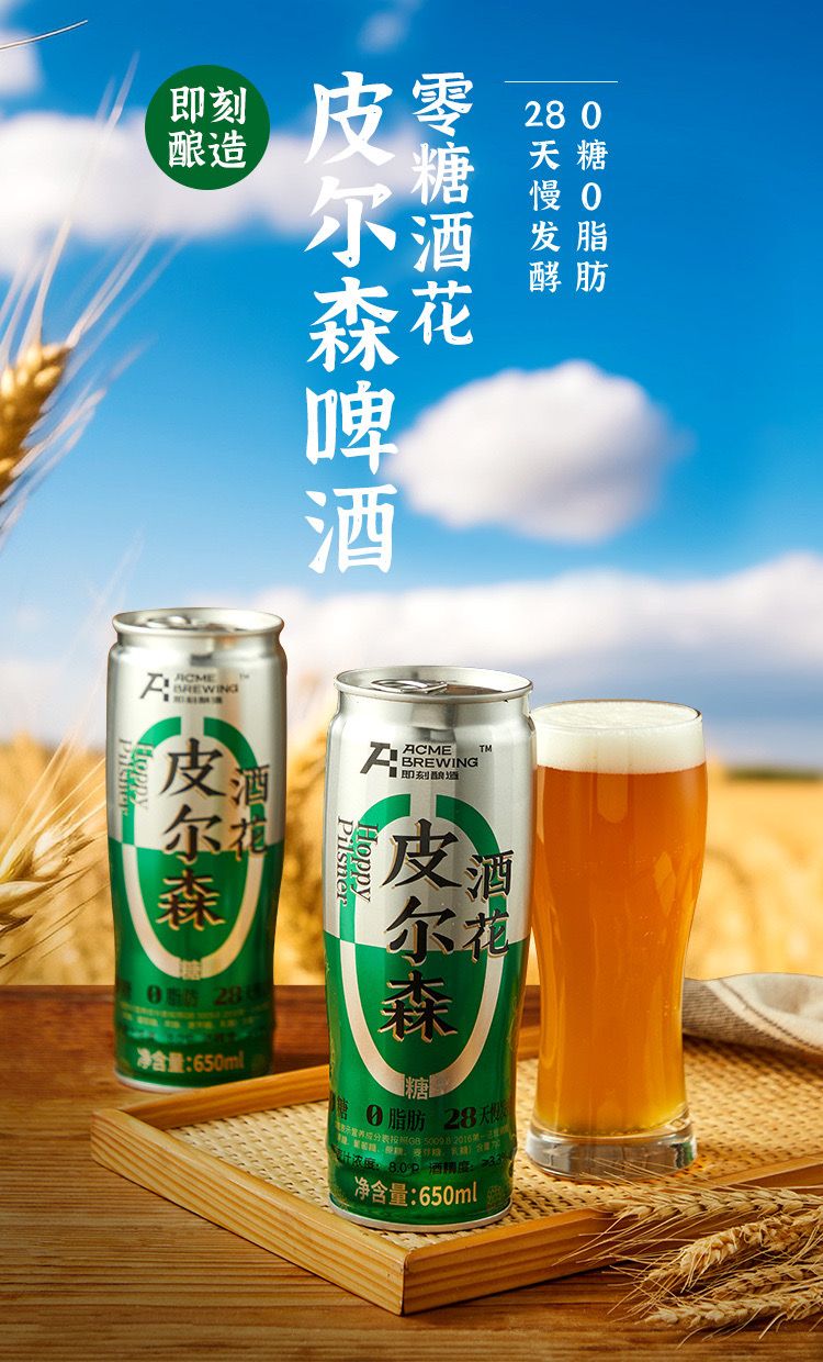 商品名称:即刻酿造皮尔森啤酒精酿啤酒原浆0糖啤酒西楚酒花黄啤盒马同款