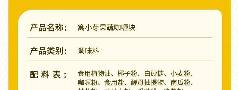 商品名称:窝小芽(WOXIAOYA)果蔬咖喱块 100g 新旧包装随机