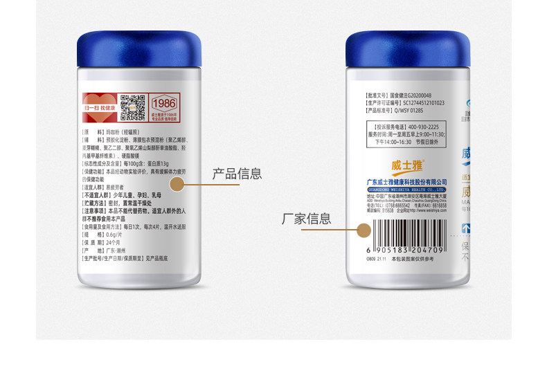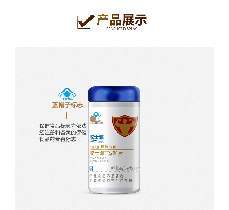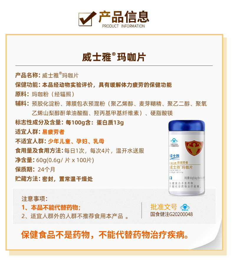 商品名称:威士雅玛咖片改善疲劳男性滋补0.6g/片×100片