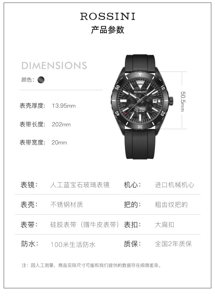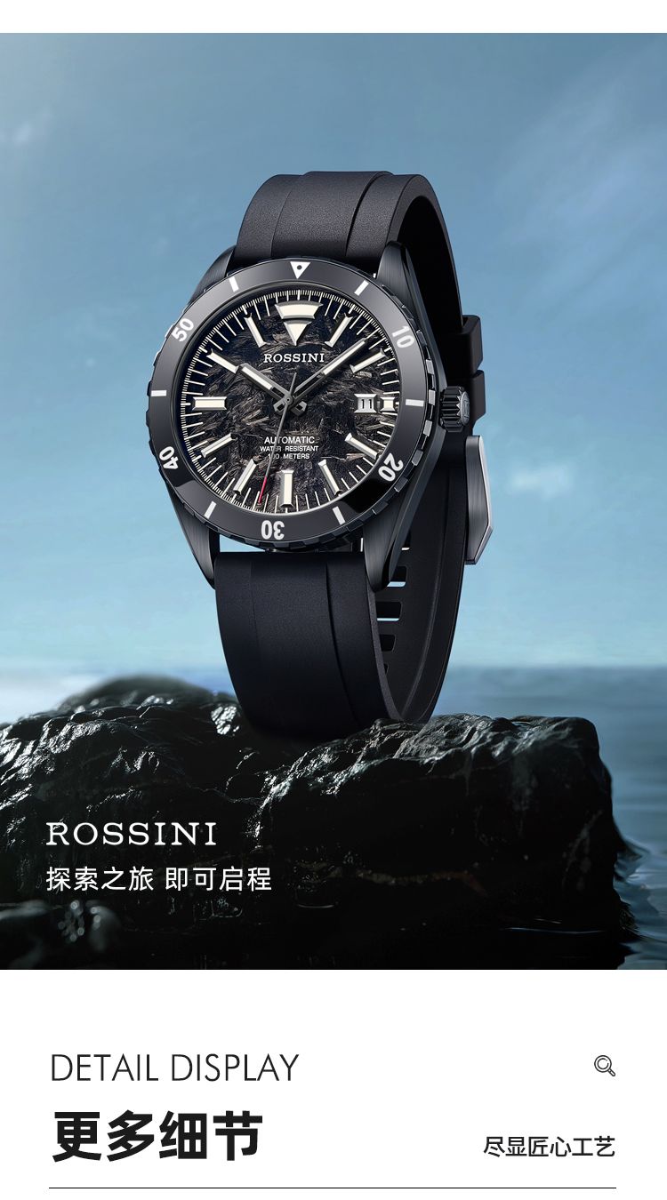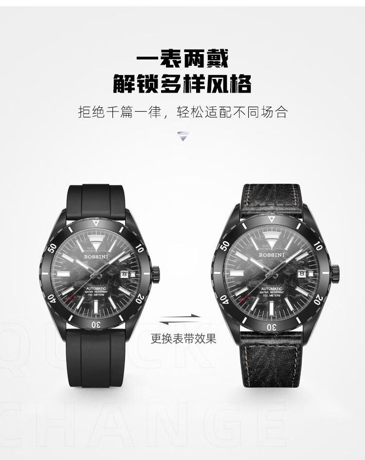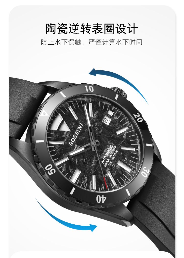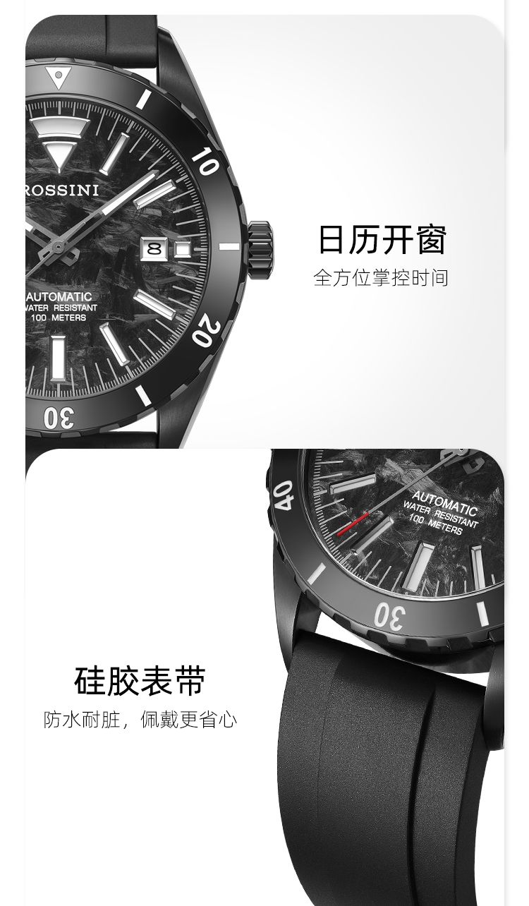 商品名称:Rossini罗西尼 机械手表黑盘硅胶带时尚运动男表50069B04D(赠表带)