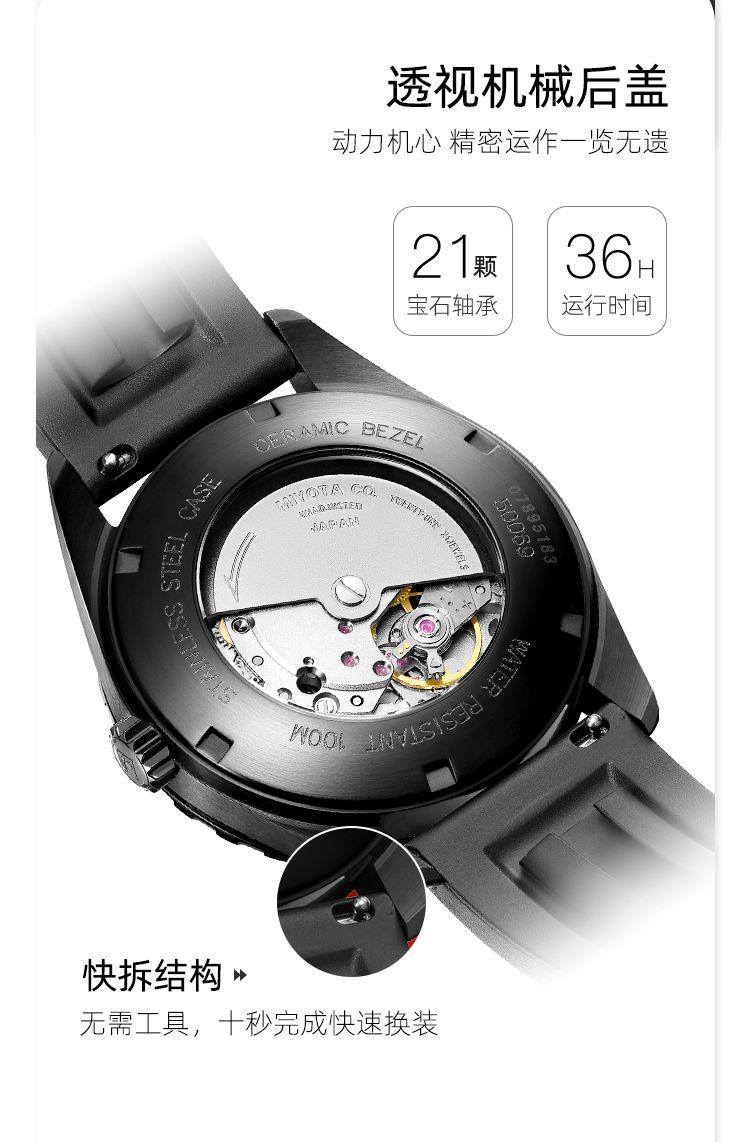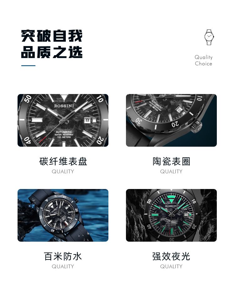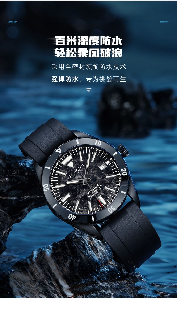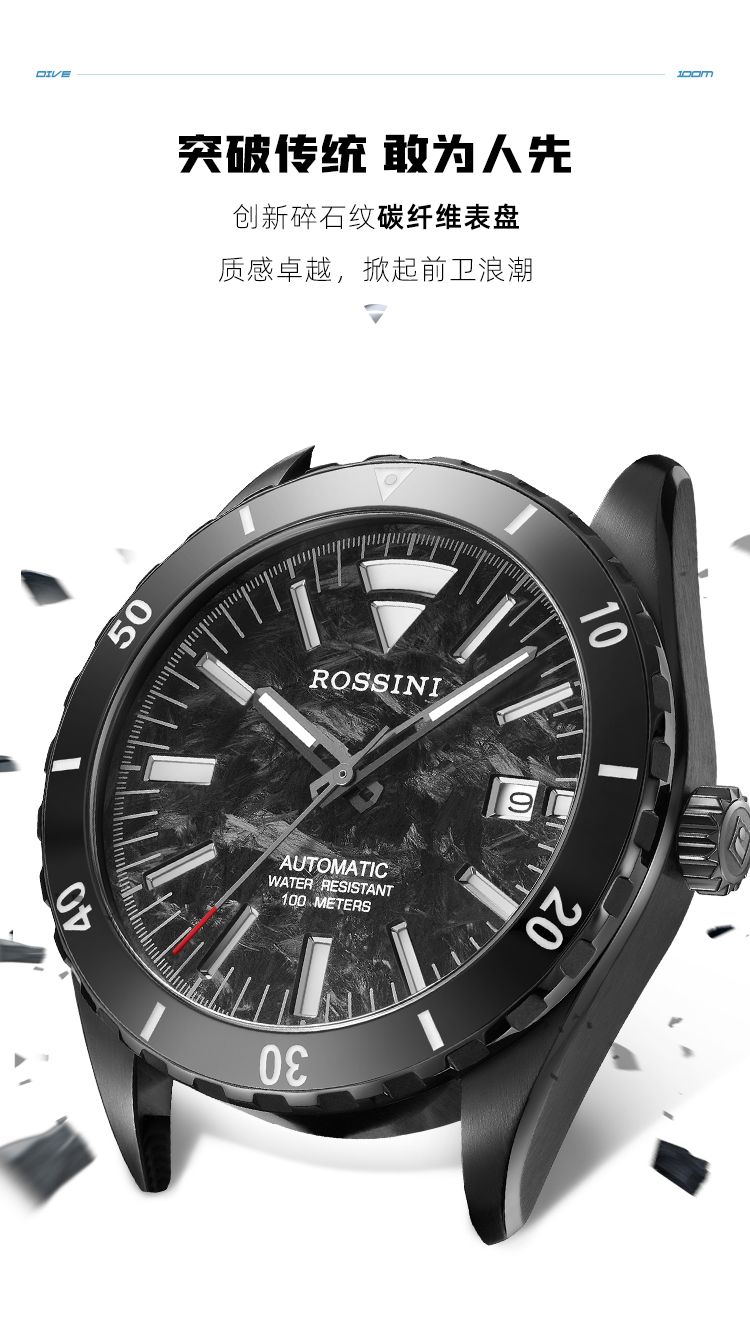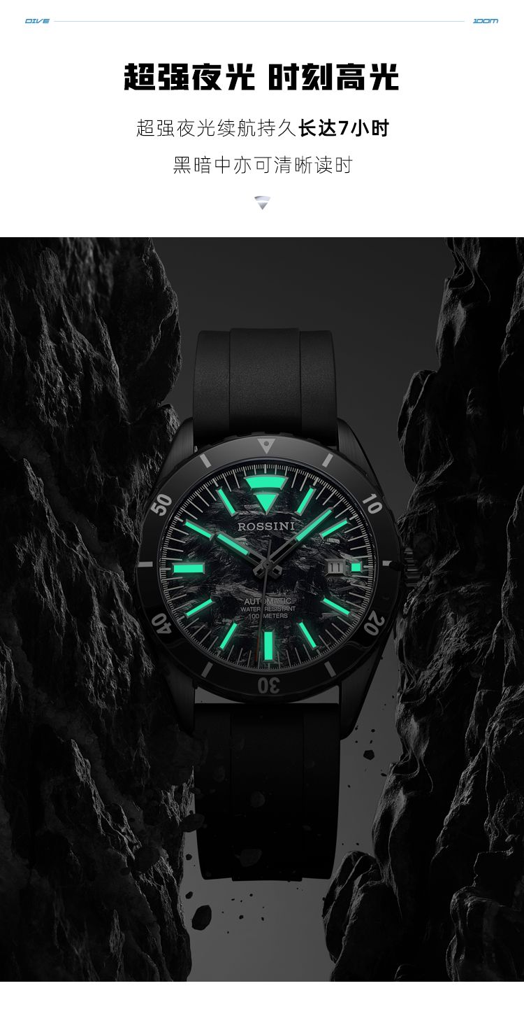 商品名称:Rossini罗西尼 机械手表黑盘硅胶带时尚运动男表50069B04D(赠表带)