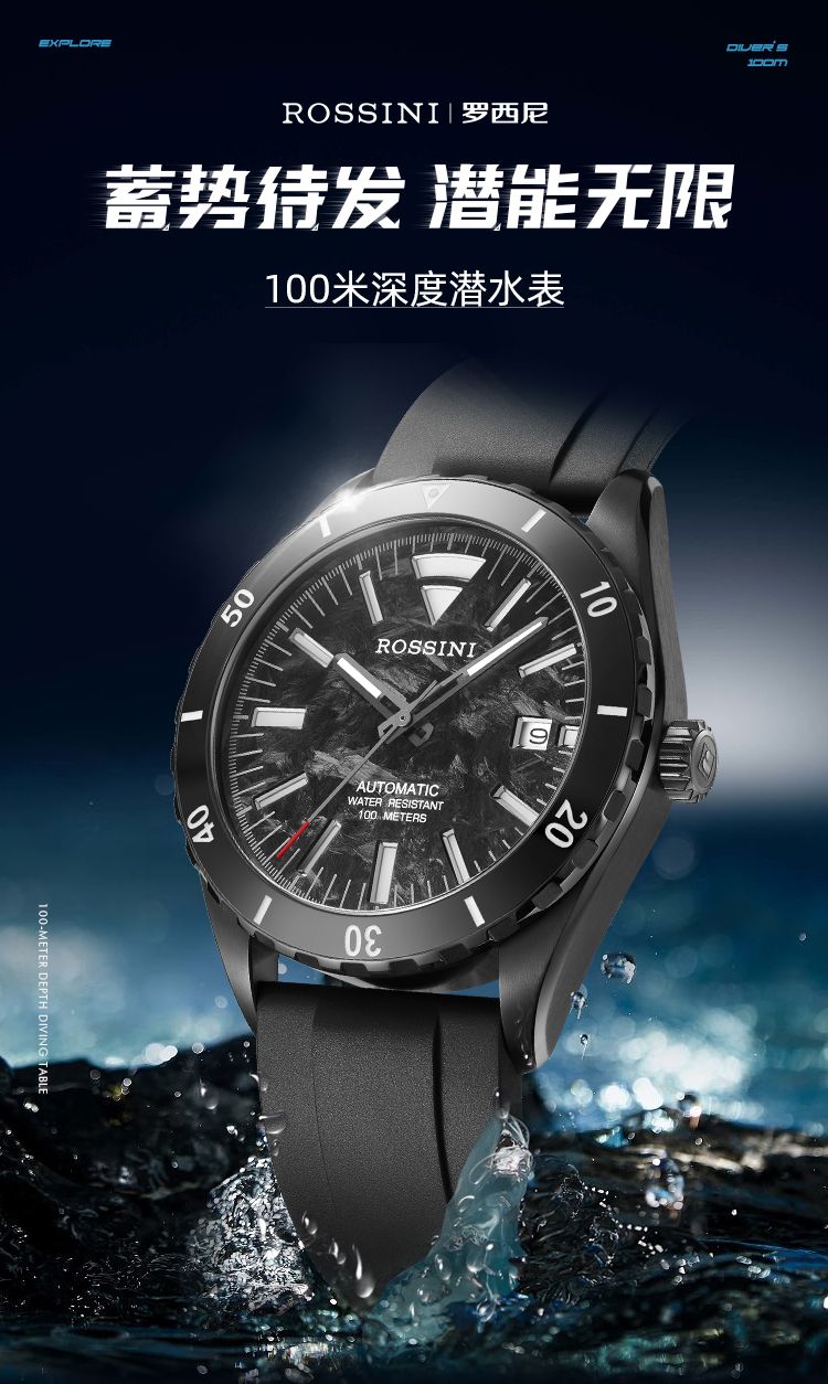 Rossini罗西尼 机械手表黑盘硅胶带时尚运动男表50069B04D(赠表带)