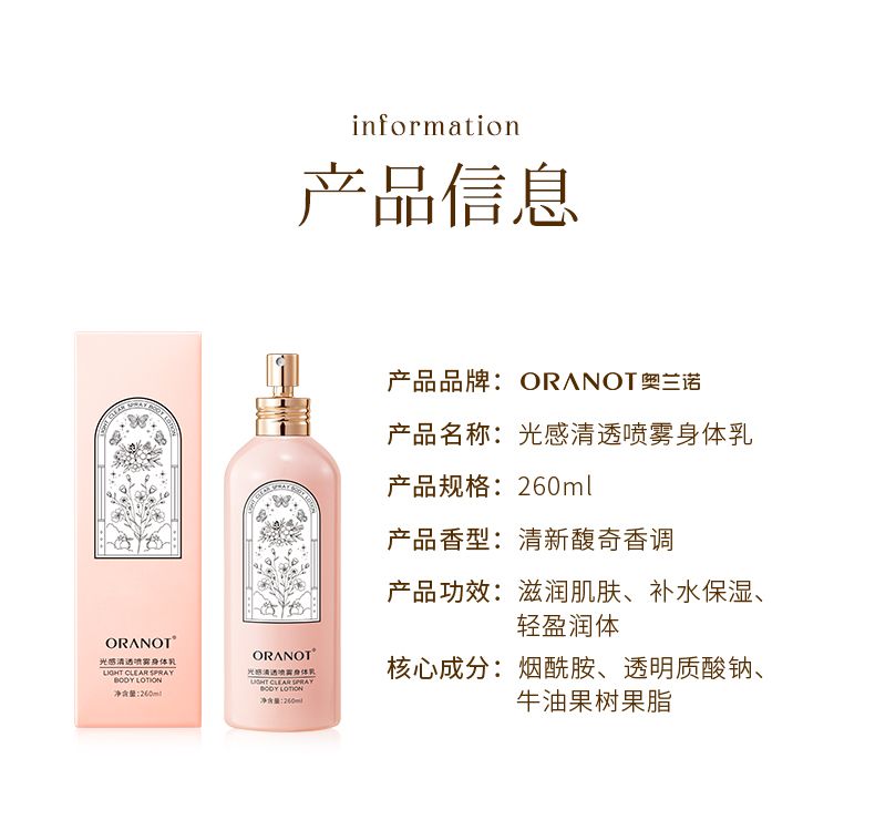 商品名称:奥兰诺 香氛喷雾身体乳保湿滋润秋冬补水嫩白烟酰胺润肤乳 260ml 持久留香