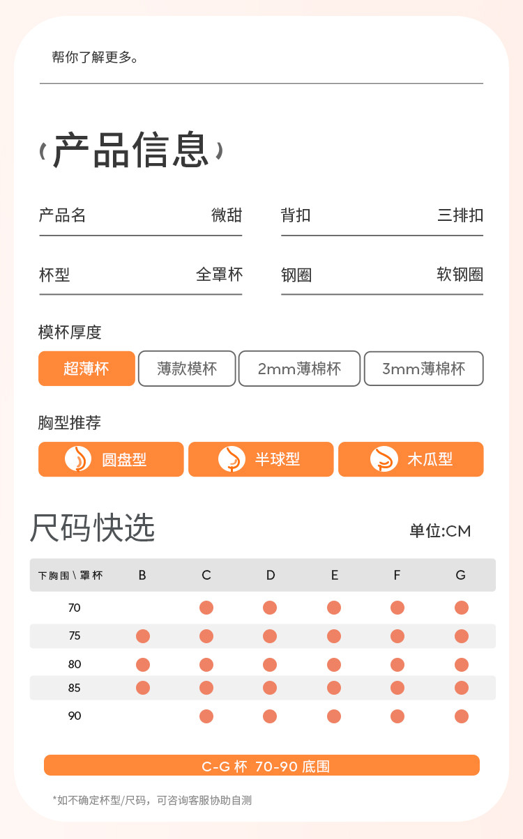 | 尺码 | 下胸围(cm) | 上胸围(cm) |
