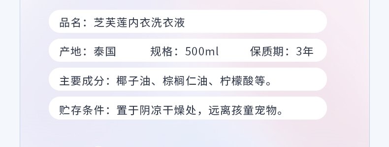 商品名称:泰国 芝芙莲(GIFFARINE)蜜桃玫瑰内衣洗衣液 500ml