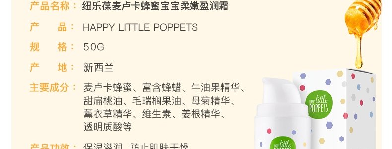 商品名称:【专享秒杀】新西兰 纽乐葆 宝宝麦卢卡蜂蜜柔嫩盈润霜 50g
