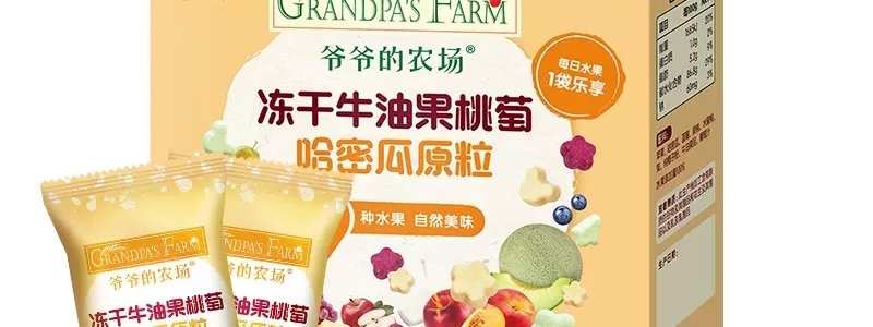 商品名称:法国 爷爷的农场(GRANDPA'S FARM)冻干牛油果桃葡哈密瓜原粒 20g